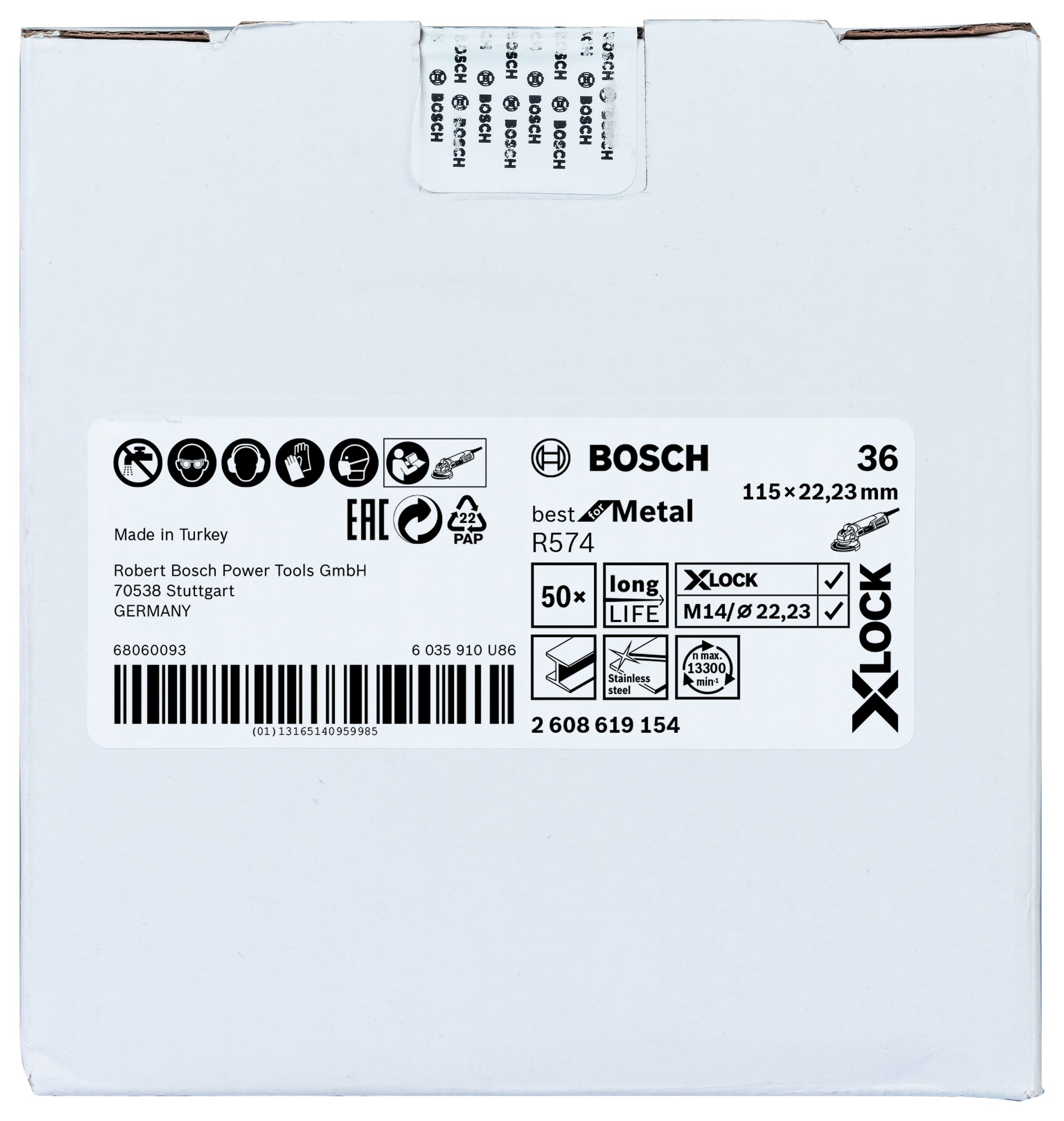 Emballage: 1Marque: BoschRéférence: 2608619154EAN: 3165140959988Description: Disque sur Fibre PRO R574 115 mm G36