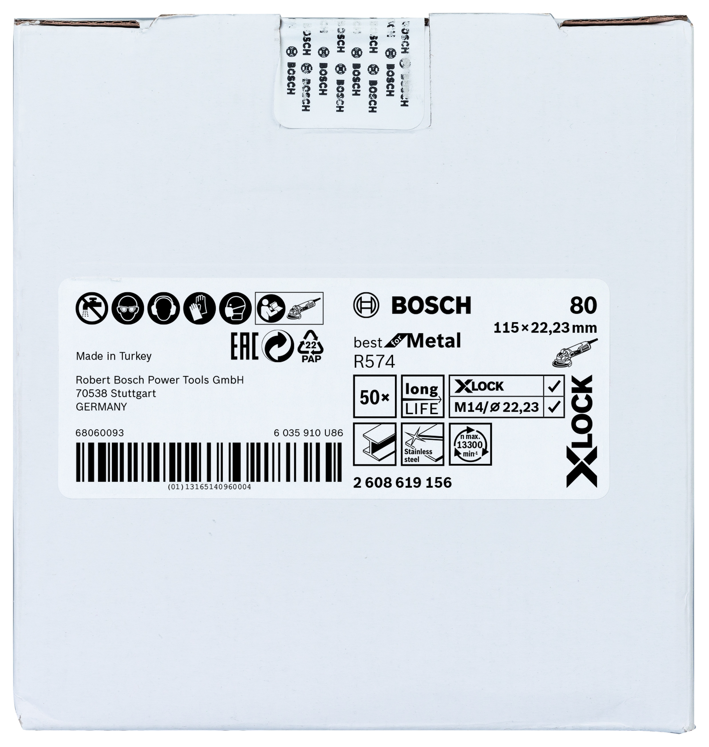 Emballage: 1Marque: BoschRéférence: 2608619156EAN: 3165140960007Description: Disque sur Fibre PRO R574 X-LOCK 115 mm G80