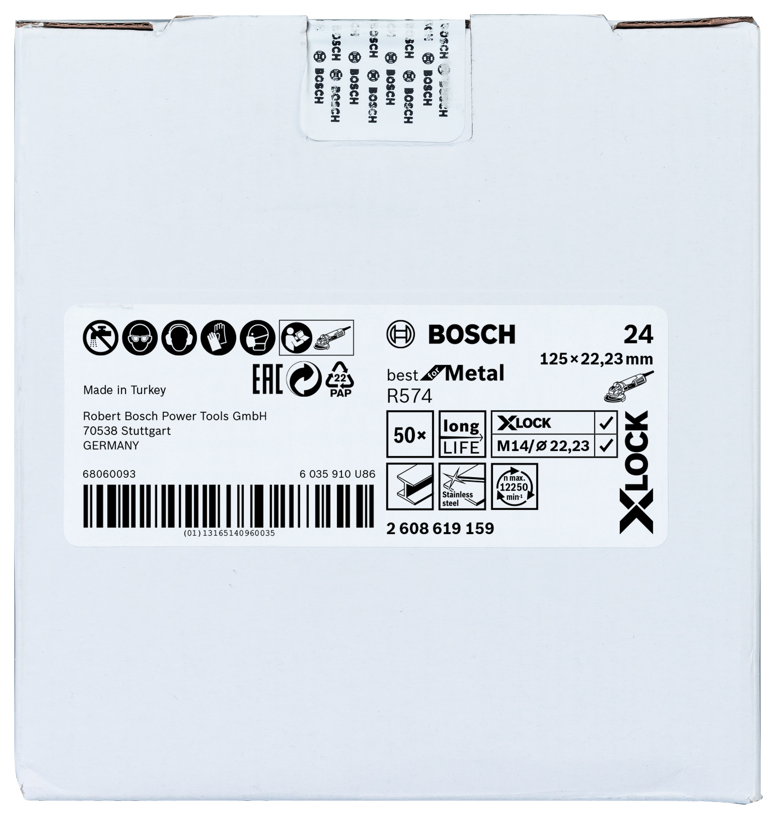 Emballage: 1Marque: BoschRéférence: 2608619159EAN: 3165140960038Description: Disque sur Fibre PRO R574 X-LOCK 125 mm G24