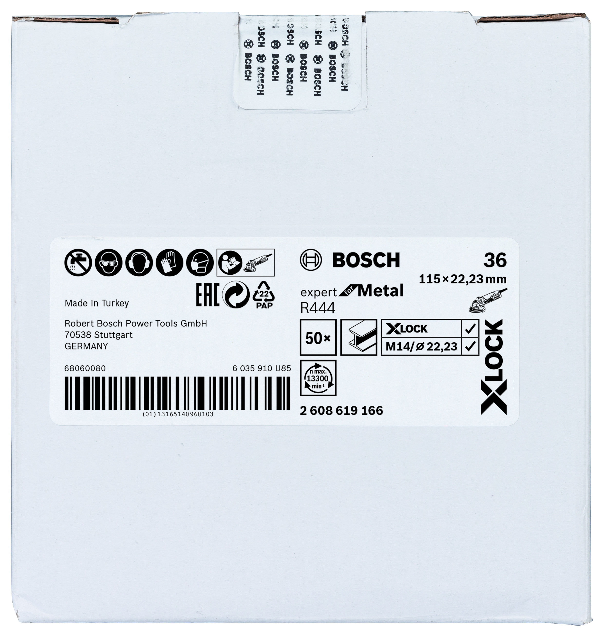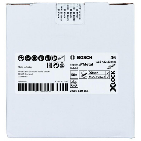 Emballage: 1Marque: BoschRéférence: 2608619166EAN: 3165140960106Description: X-LOCK disque à fibre, 115mm, G 36, R444, Expert for Metal