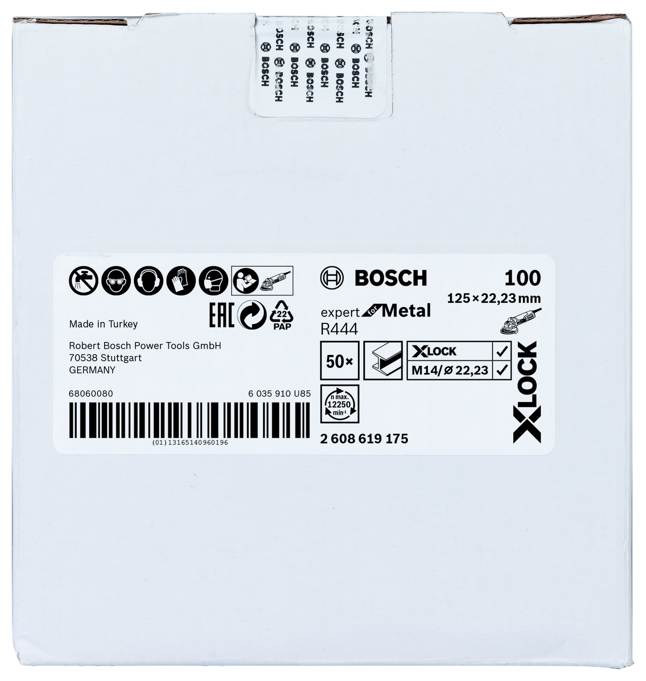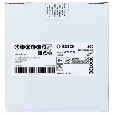 Emballage: 1Marque: BoschRéférence: 2608619175EAN: 3165140960199Description: X-LOCK disque à fibre, 125mm, G 100, R444, Expert for Metal