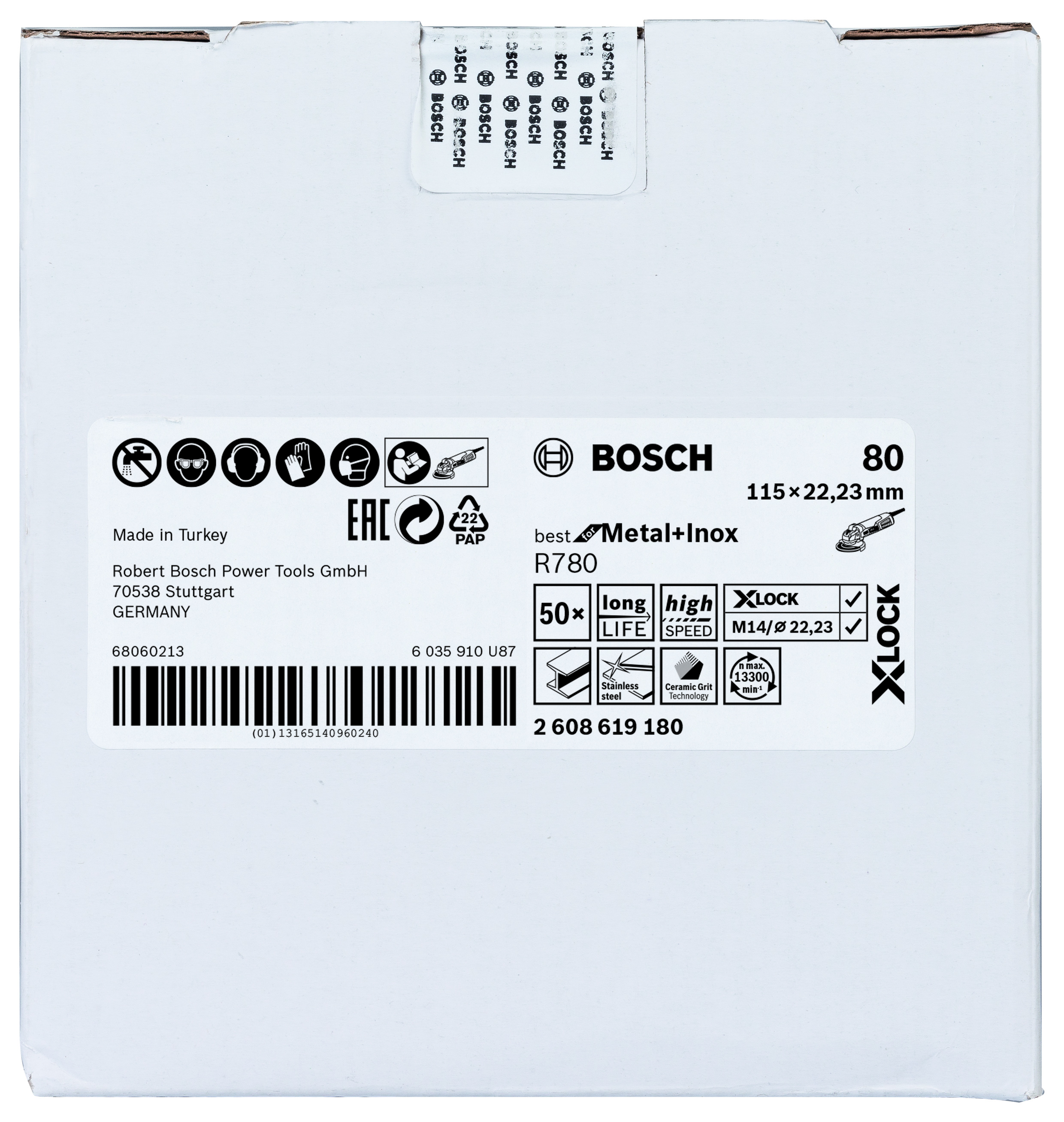 Emballage: 1Marque: BoschRéférence: 2608619180EAN: 3165140960243Description: Disque sur Fibre PRO R780 X-LOCK 115 mm G80
