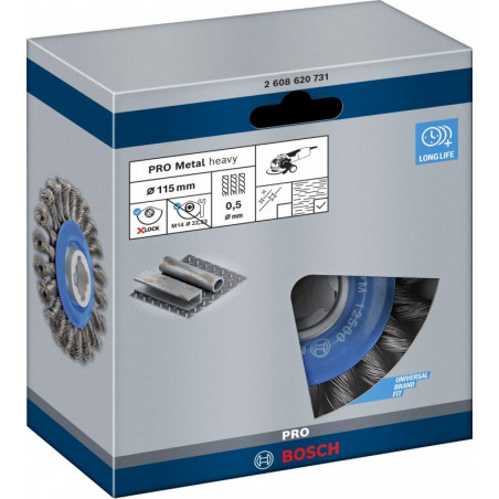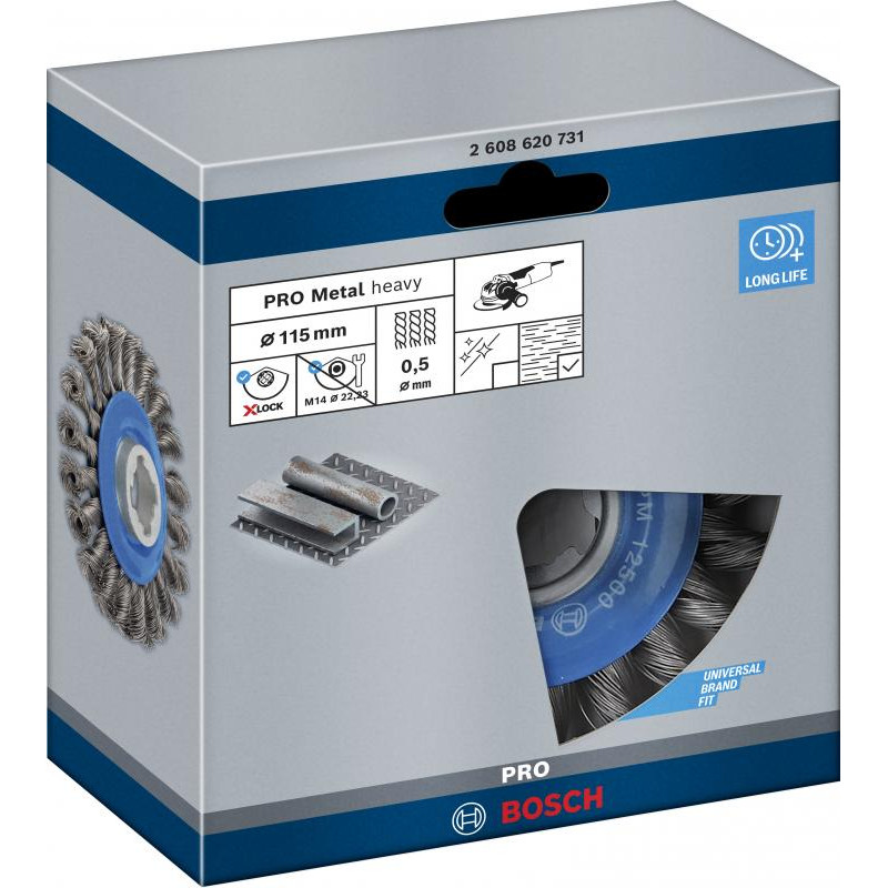 Emballage: 1Marque: BoschRéférence: 2608620731EAN: 3165140954174Description: Brosse circulaire PRO X-LOCK pour le Métal 115x0.5 mm