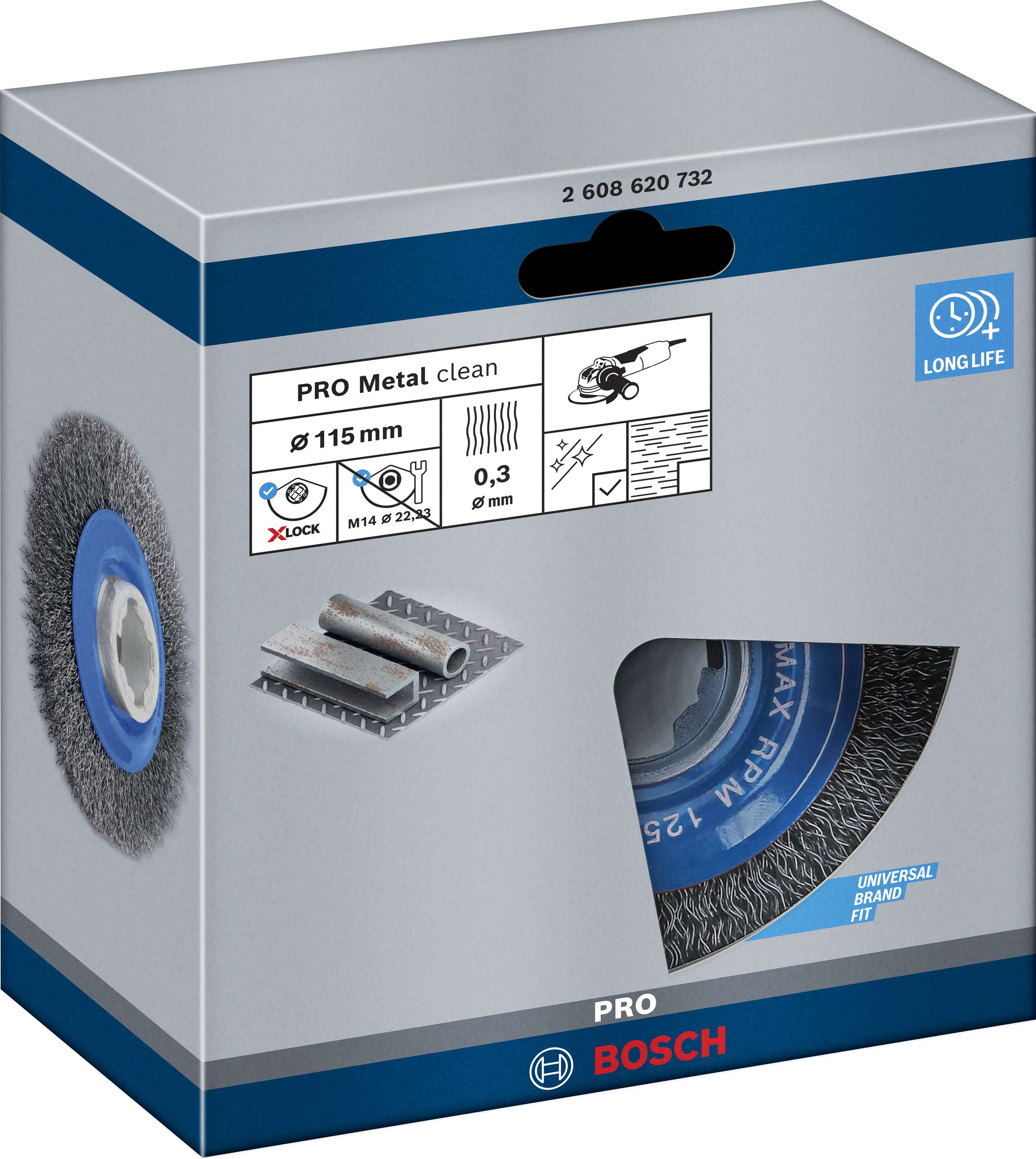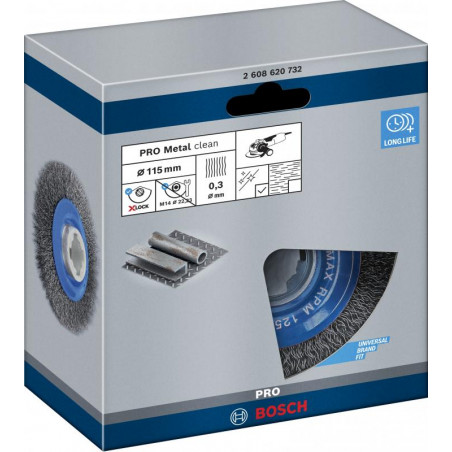 Emballage: 1Marque: BoschRéférence: 2608620732EAN: 3165140954181Description: Brosse circulaire PRO X-LOCK pour le Métal 115x0.3 mm