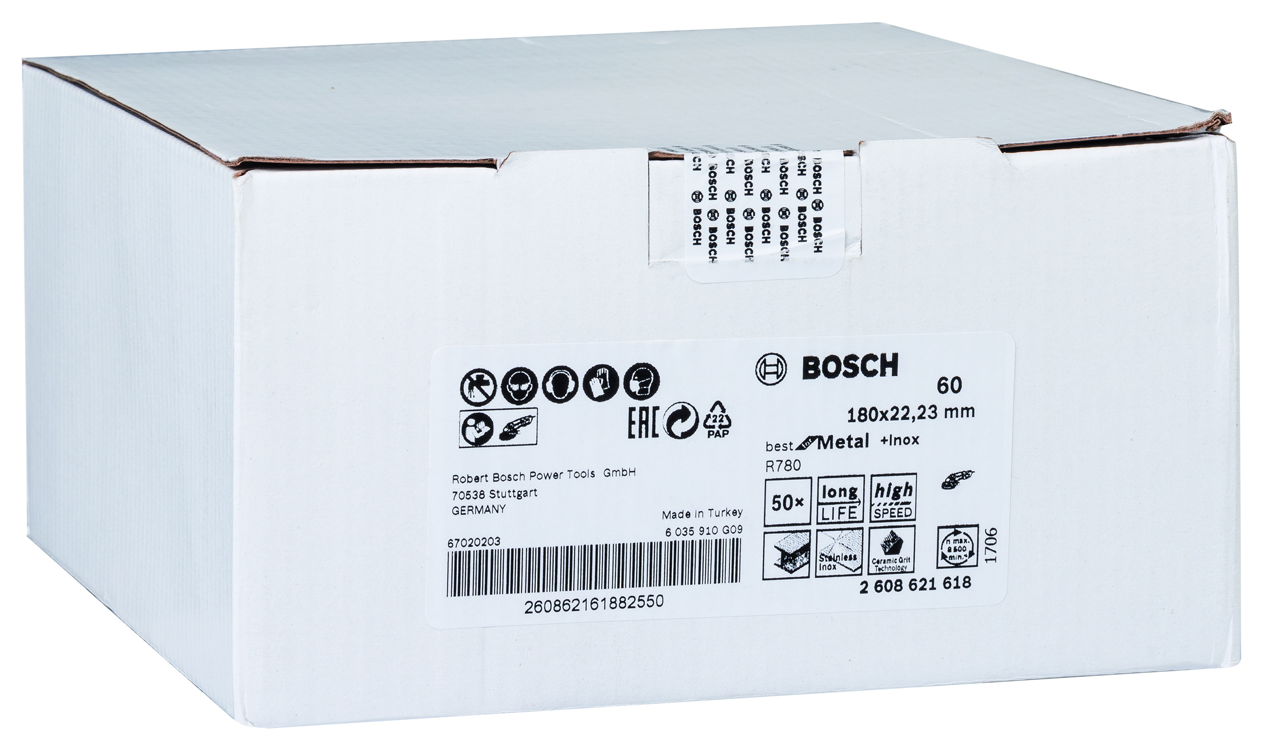 Emballage: 50Marque: BoschRéférence: 2608621618EAN: 3165140915304Description: Disque sur Fibre PRO R780 180 mm G60
