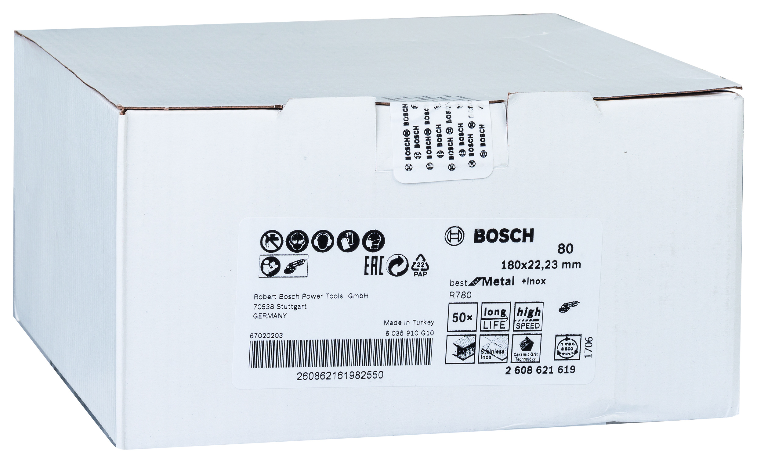 Emballage: 50Marque: BoschRéférence: 2608621619EAN: 3165140915311Description: Disque sur Fibre PRO R780 180 mm G80