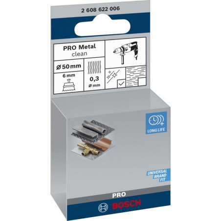 Emballage: 1Marque: BoschRéférence: 2608622006EAN: 3165140035972Description: Brosse boisseau PRO pour perceuse 50x0.3 mm