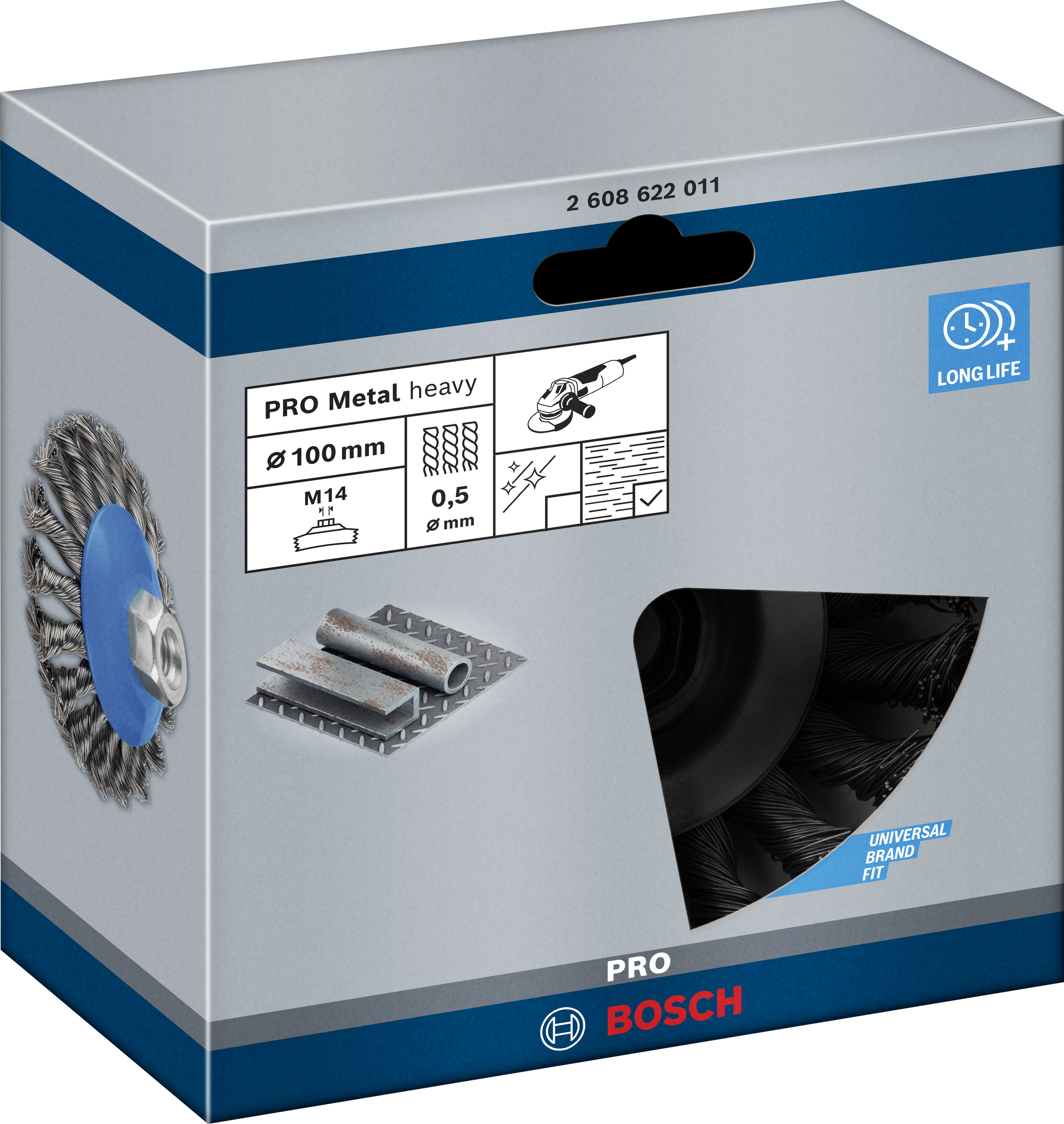 Emballage: 1Marque: BoschRéférence: 2608622011EAN: 3165140036023Description: Brosse biseau PRO pour le Métal M14 100x0.5 mm