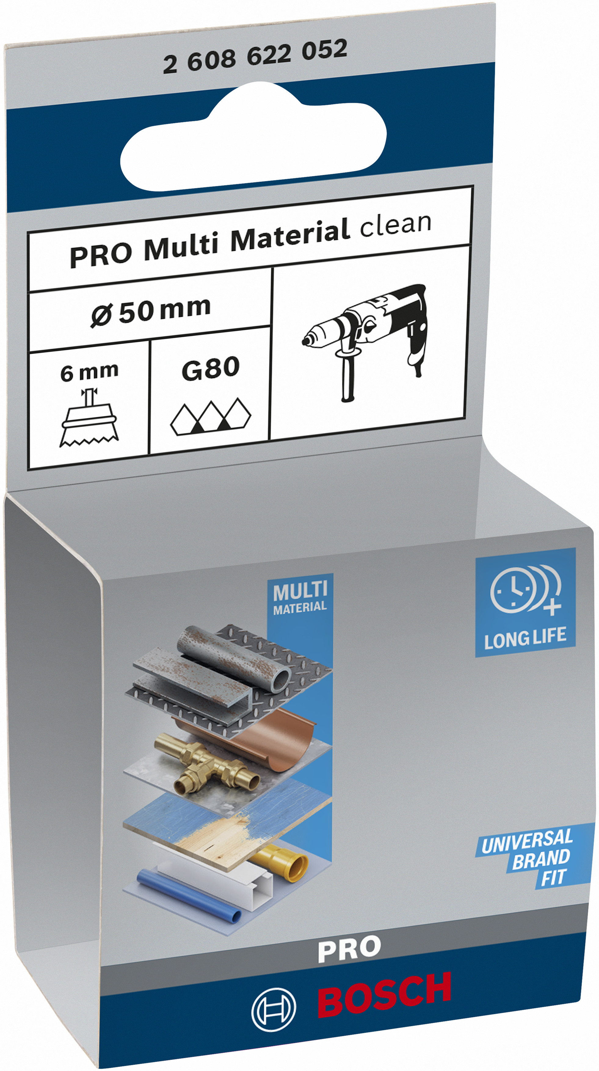 Emballage: 1Marque: BoschRéférence: 2608622052EAN: 3165140082112Description: Brosse boisseau PRO Multi-matériaux pour perceuse 50x1 mm