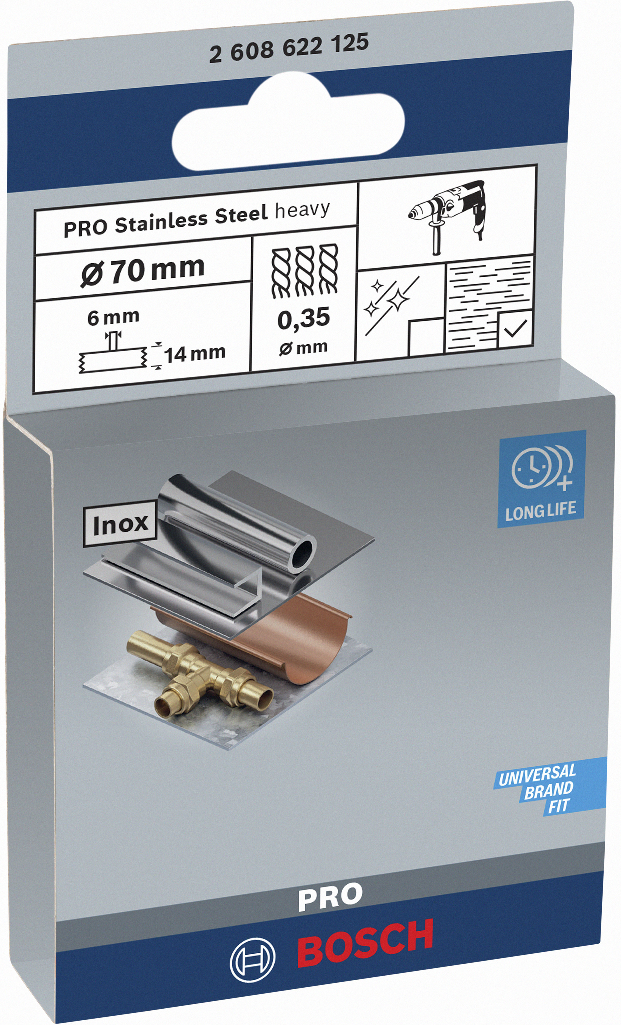 Emballage: 1 Marque: Bosch Référence: 2608622125 EAN: 3165140632058 Description: Brosse circulaire PRO pour l'Inox fils torsadés pour perceuse 70x0.35 mm