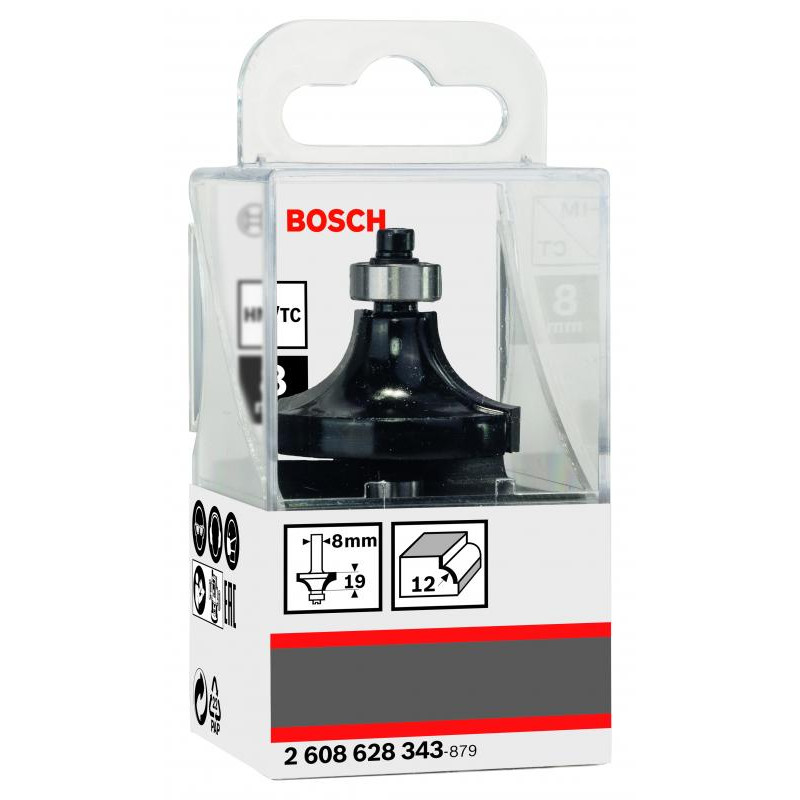 Emballage: 1Marque: BoschRéférence: 2608628343EAN: 3165140358040Description: Fraise à arrondir 8 mm, R1 12 mm, L 19 mm, G 60 mm