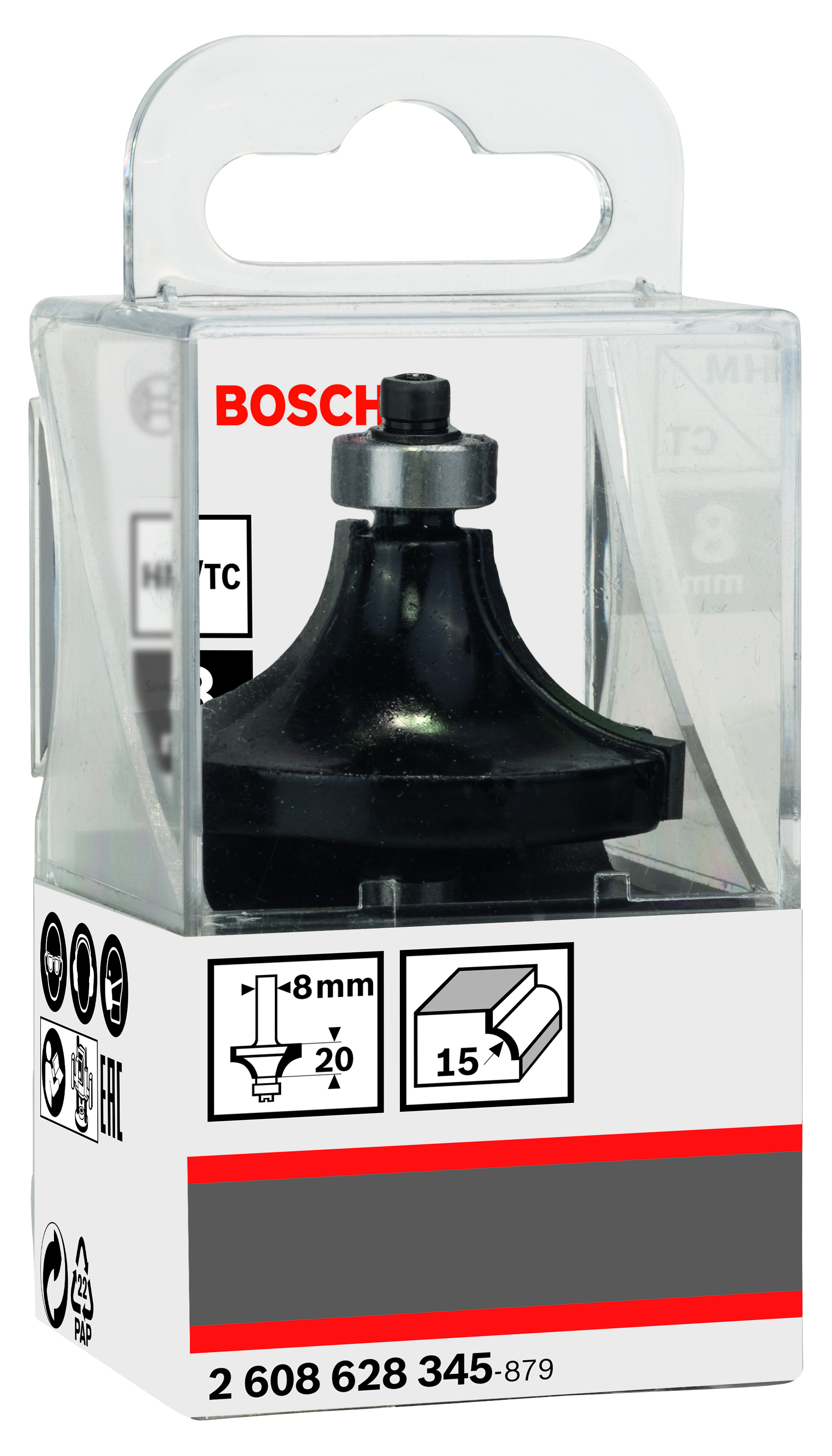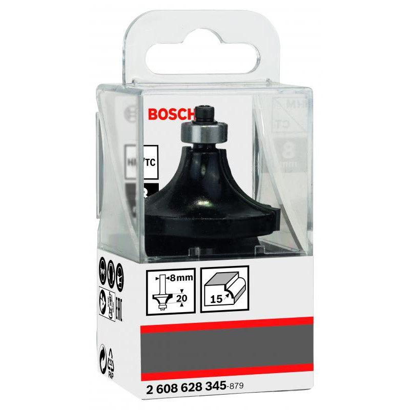 Emballage: 1Marque: BoschRéférence: 2608628345EAN: 3165140358064Description: Fraise à arrondir 8 mm, R1 15 mm, L 22 mm, G 66 mm