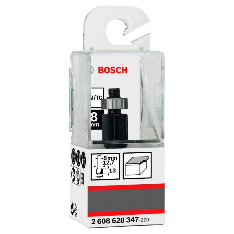 Emballage: 1Marque: BoschRéférence: 2608628347EAN: 3165140358088Description: Fraise à araser 8 mm, D1 12,7 mm, L 13 mm, G 56 mm