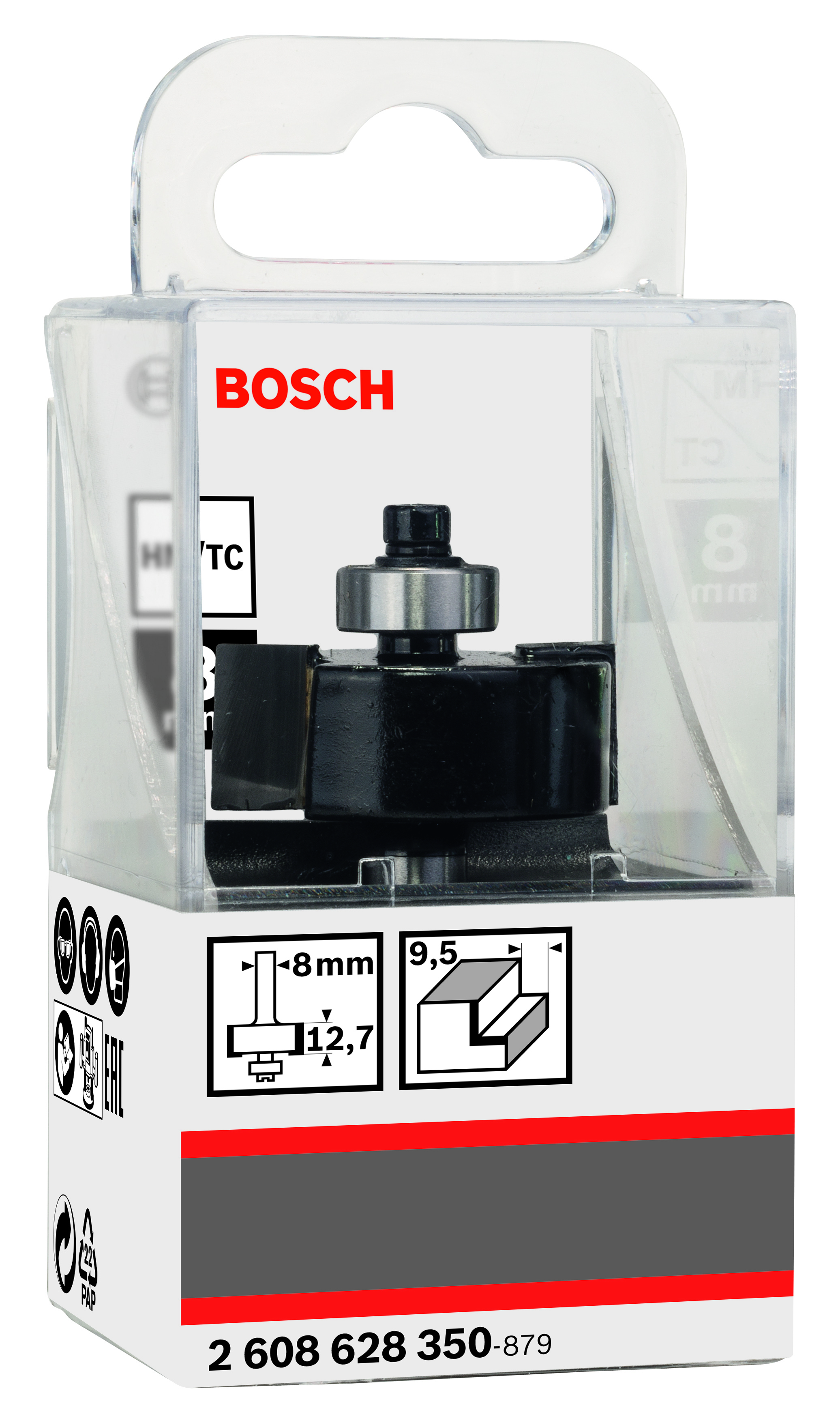 Emballage: 1Marque: BoschRéférence: 2608628350EAN: 3165140358118Description: Fraise à feuillurer 8 mm, B 9,5 mm, D 31,8 mm, L 12,5 mm, G 54 mm