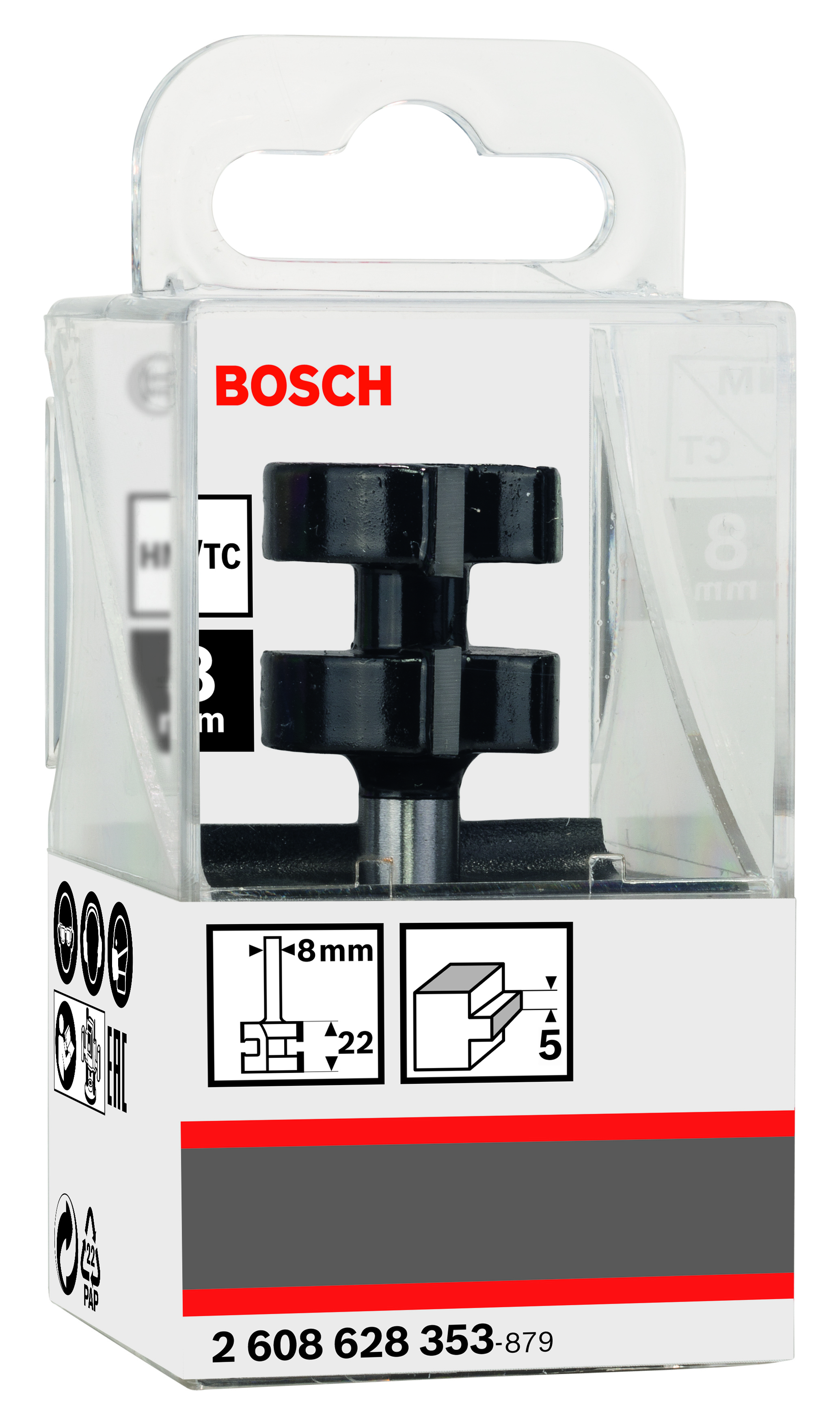 Emballage: 1Marque: BoschRéférence: 2608628353EAN: 3165140358149Description: Fraise à bouveter 8 mm, D1 25 mm, L 5 mm, G 58 mm