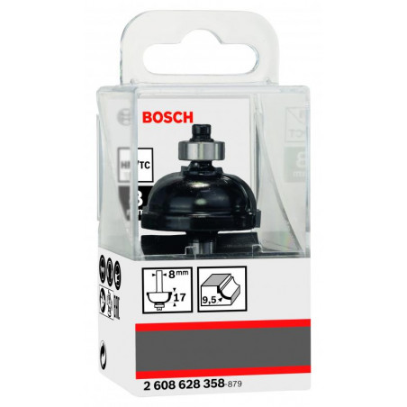 Emballage: 1Marque: BoschRéférence: 2608628358EAN: 3165140358194Description: Fraise à profiler F 8 mm, R1 9,5 mm, D 35 mm, L 16,2 mm, G 59 mm
