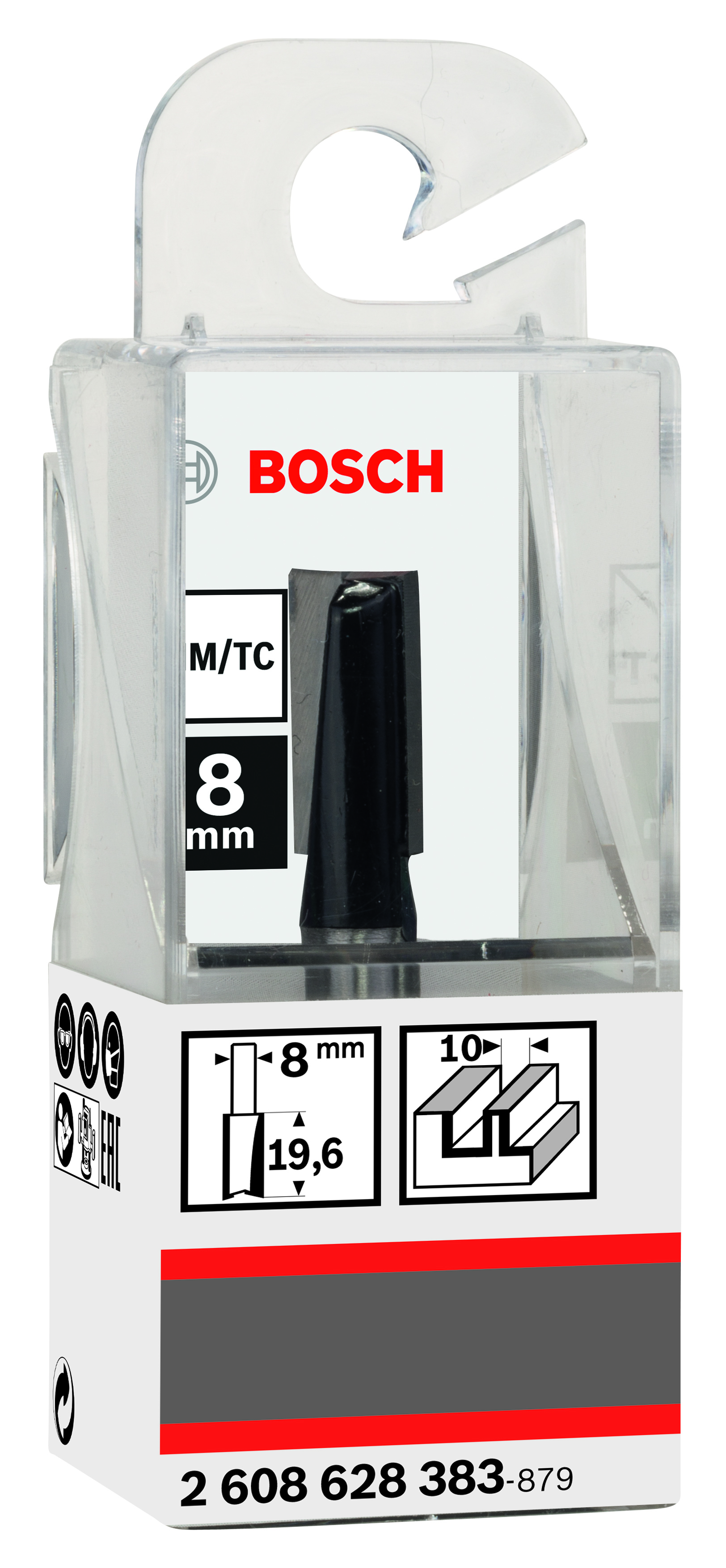 Emballage: 1Marque: BoschRéférence: 2608628383EAN: 3165140358446Description: Fraise à rainurer droit 8 mm, D1 10 mm, L 20 mm, G 51 mm