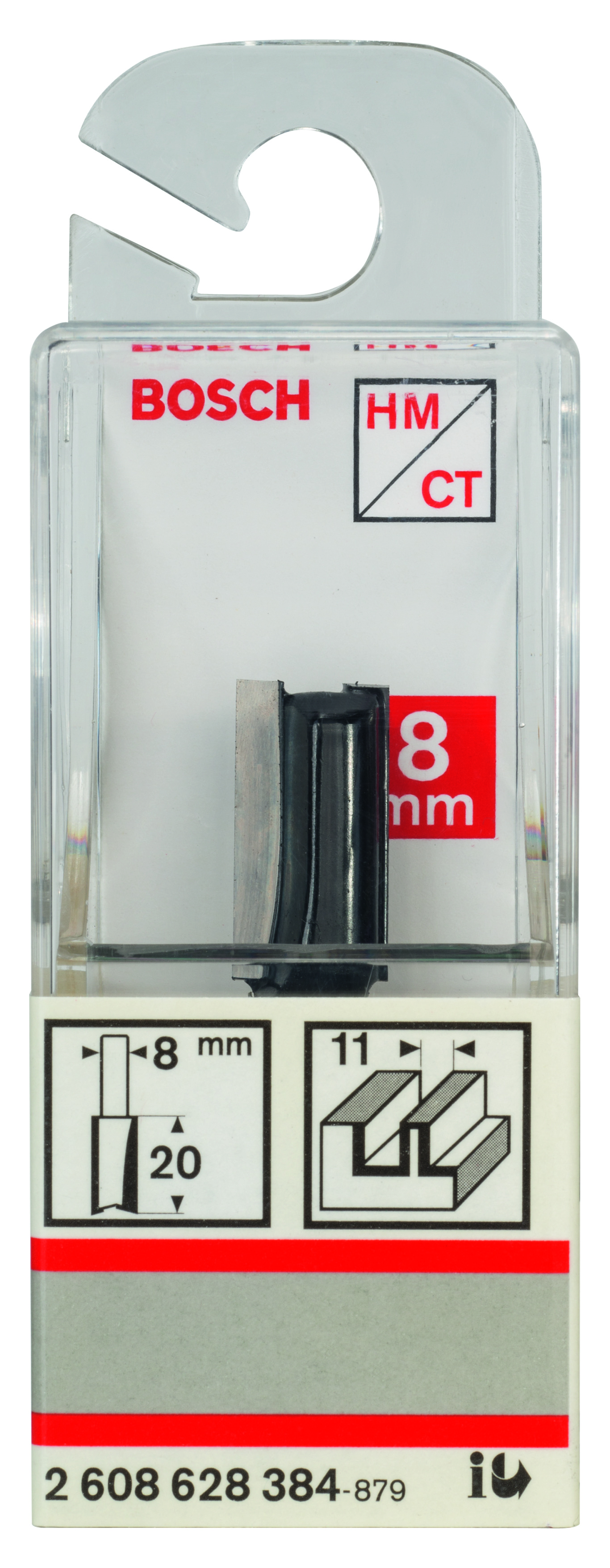 Emballage: 1Marque: BoschRéférence: 2608628384EAN: 3165140358453Description: Fraise à rainurer droit 8 mm, D1 11 mm, L 20 mm, G 51 mm