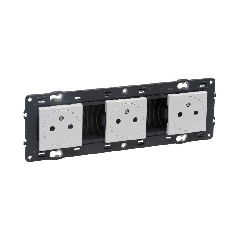 Description: Valena Next prise 3x2P+T précâblée affleurante appareil complet blanc à vis
