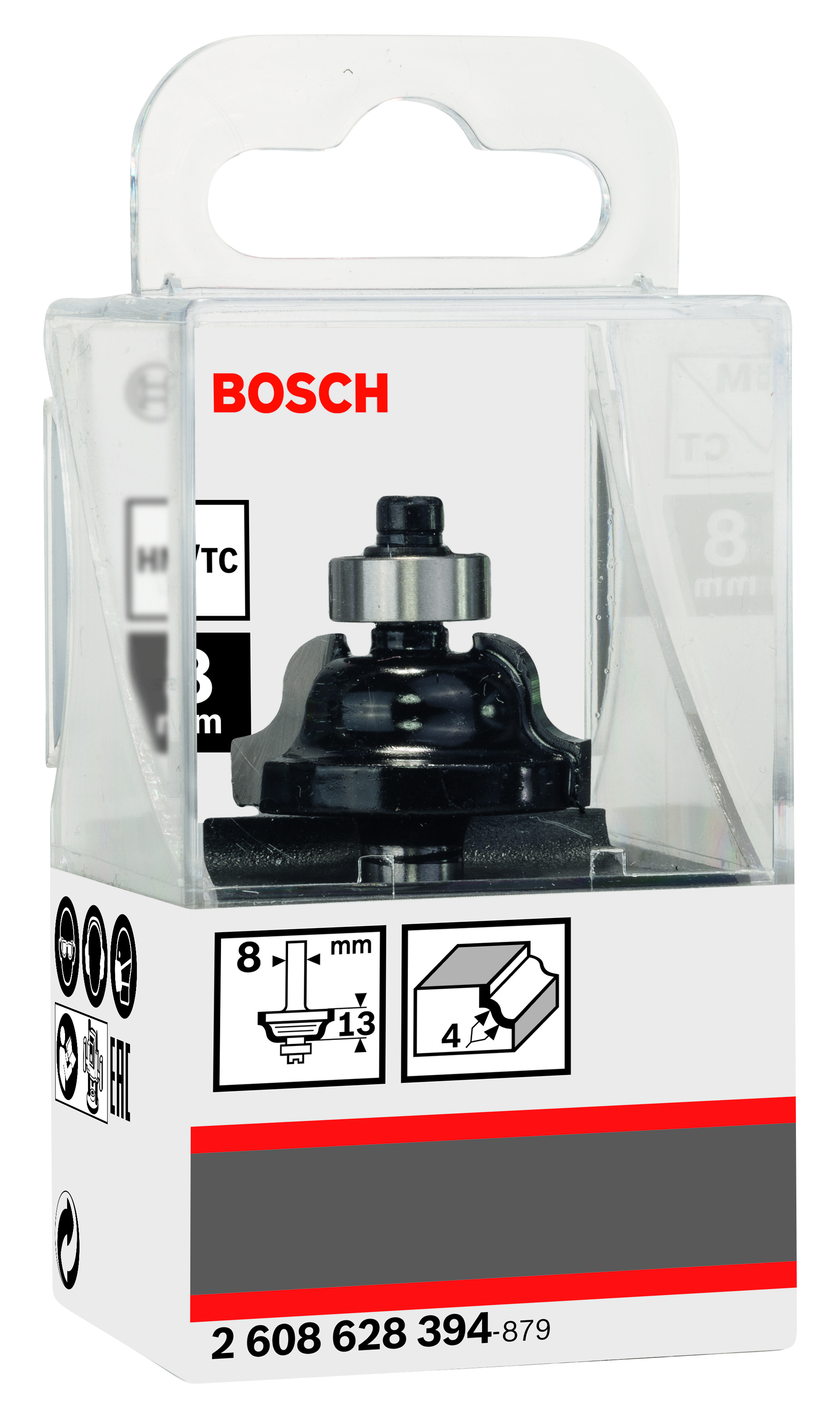 Emballage: 1Marque: BoschRéférence: 2608628394EAN: 3165140358552Description: Fraise à profiler B 8 mm, R1 4 mm, B 8 mm, L 12,4 mm, G 54 mm