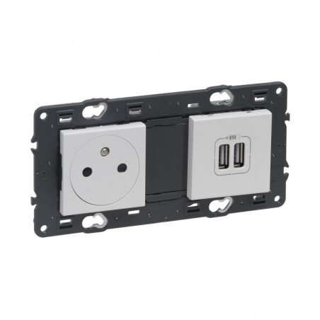 Emballage: 1 Marque: Legrand Référence: 741535 EAN: 3414971276079 Description: Valena Next prise 2P+T + double USB appareil complet affleurant blanc à vis