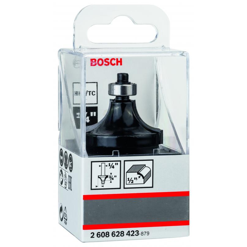 Emballage: 1Marque: BoschRéférence: 2608628423EAN: 3165140358842Description: Fraise à arrondir 1/4'', R1 12,7 mm, D 38,1 mm, L 18,6 mm, G 60 mm