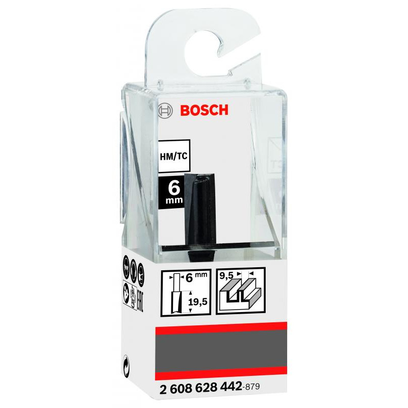 Emballage: 1Marque: BoschRéférence: 2608628442EAN: 3165140374156Description: Fraise à rainurer droit 6 mm, D1 9,5 mm, L 19,5 mm, G 51 mm