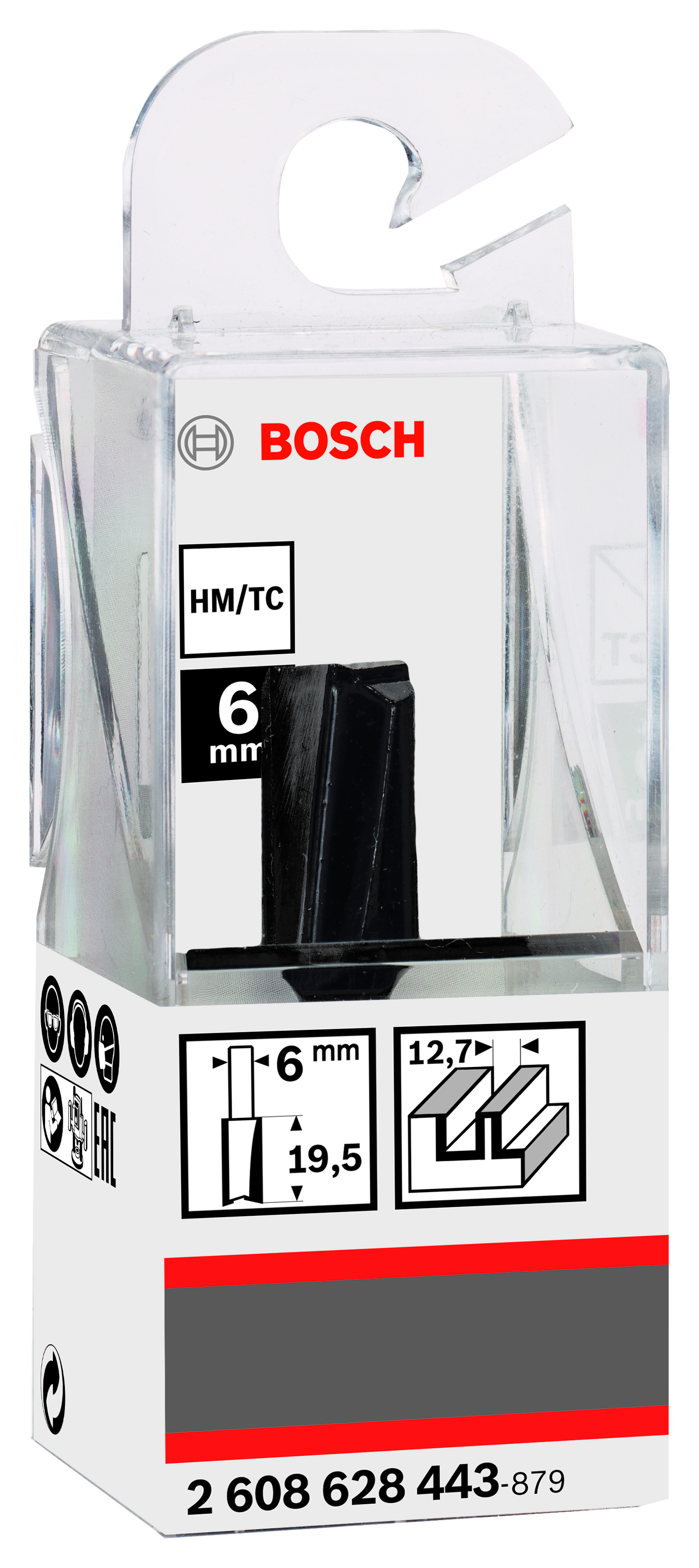 Emballage: 1Marque: BoschRéférence: 2608628443EAN: 3165140374163Description: Fraise à rainurer droit 6 mm, D1 12,7 mm, L 19,5 mm, G 51 mm