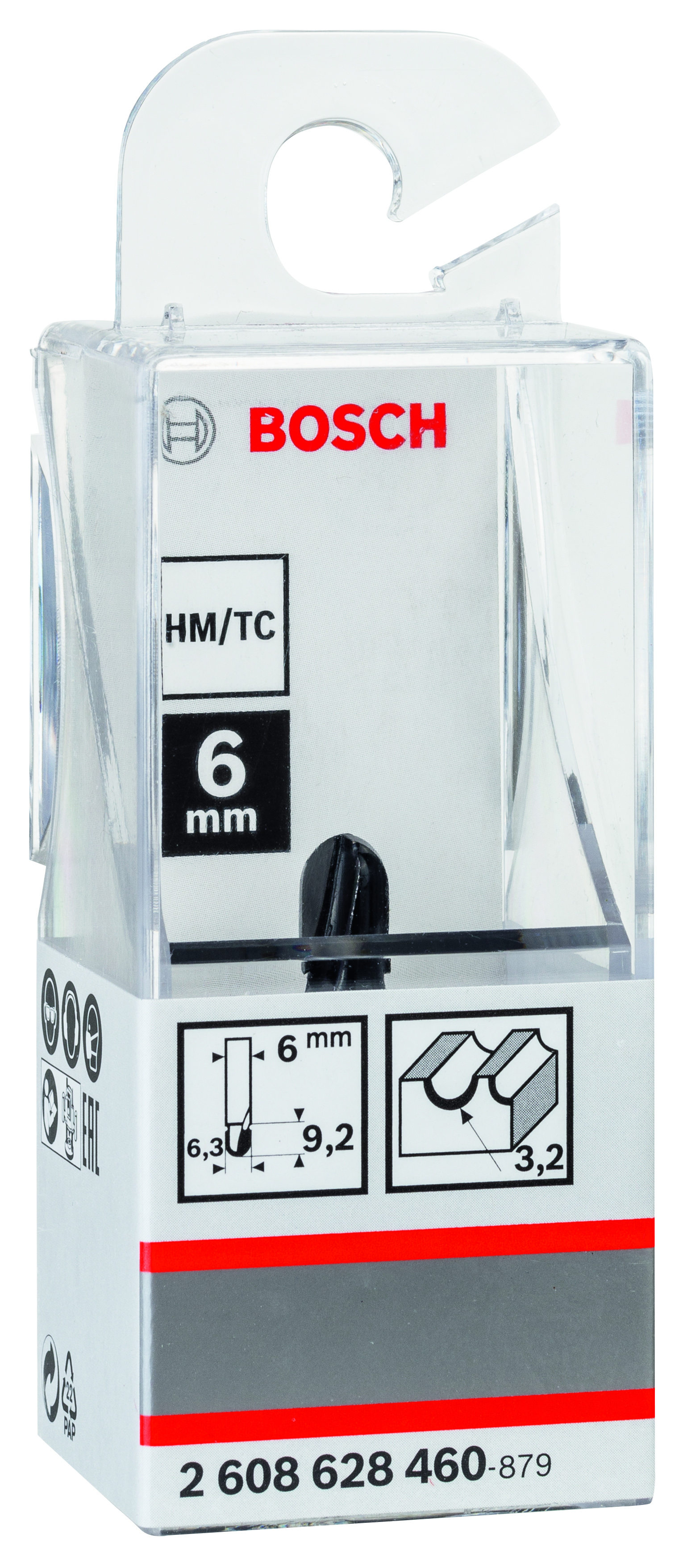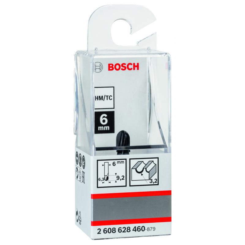 Emballage: 1Marque: BoschRéférence: 2608628460EAN: 3165140374330Description: Fraise à canneler 6 mm, R1 3.2 mm, D 6.35 mm, L 9,1 mm, G 40 mm