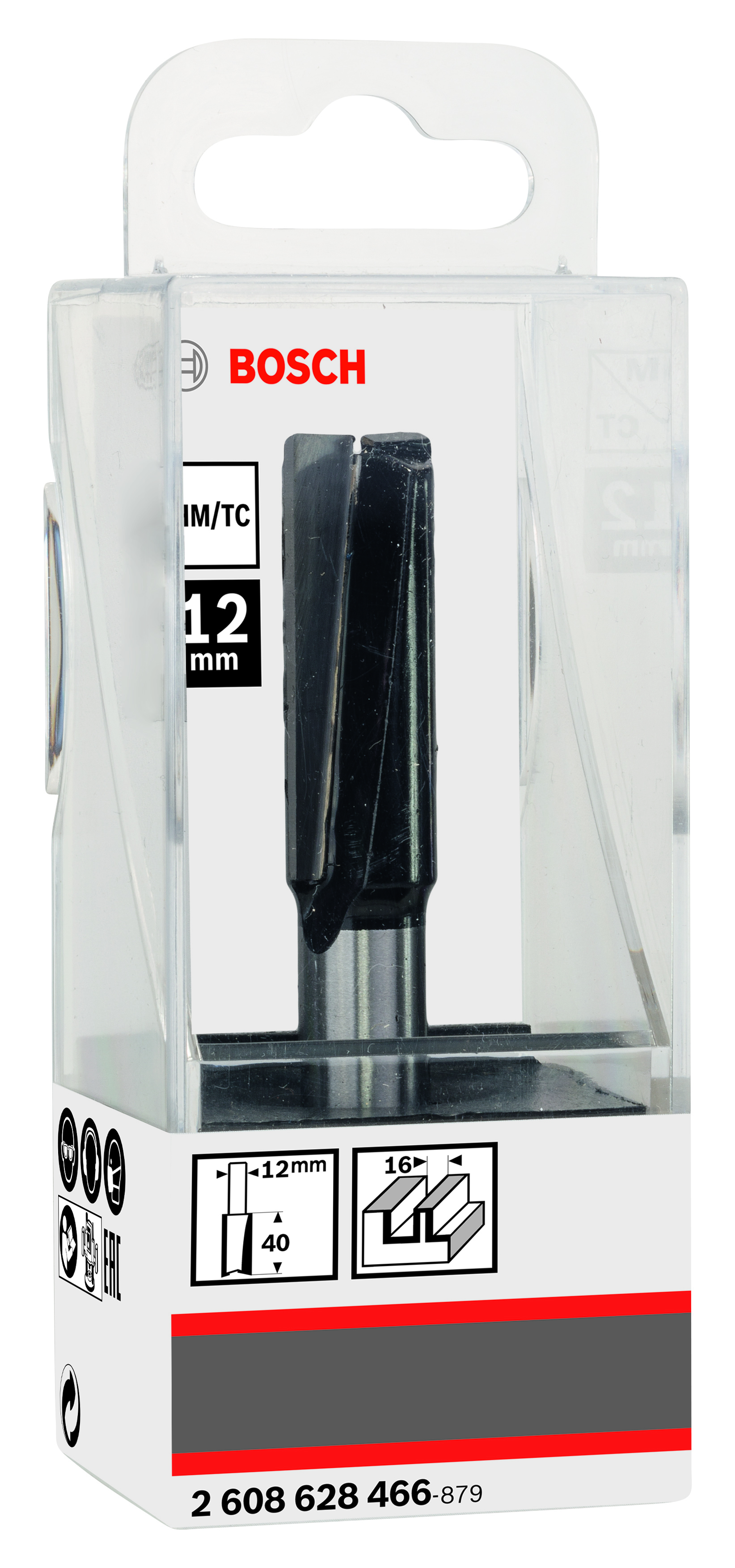 Emballage: 1Marque: BoschRéférence: 2608628466EAN: 3165140420297Description: Fraise à rainurer droit 12 mm, D1 16 mm, L 40 mm, G 81 mm