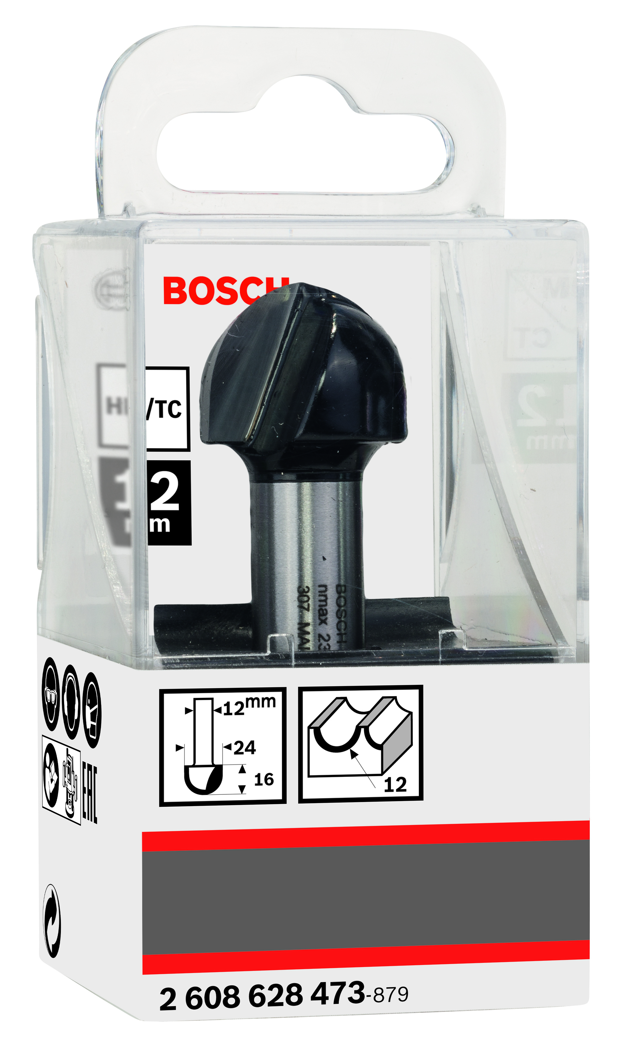 Emballage: 1Marque: BoschRéférence: 2608628473EAN: 3165140420365Description: Fraise à canneler 12 mm, R1 12 mm, D 24 mm, L 15,9 mm, G 57 mm