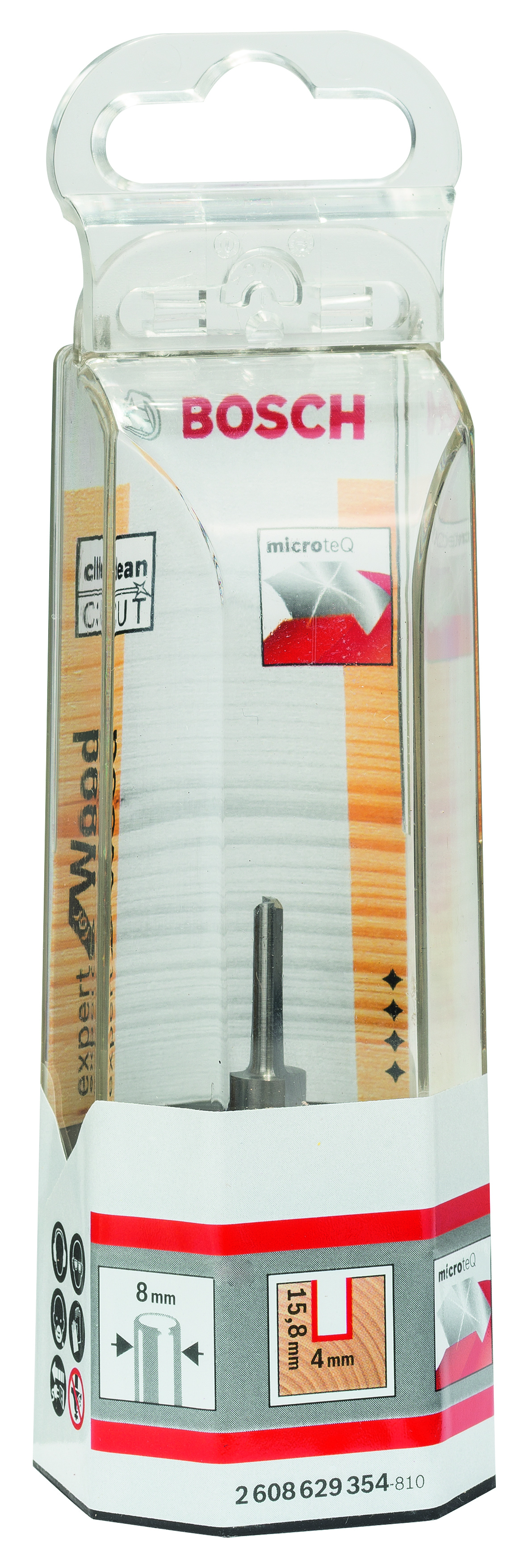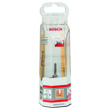 Emballage: 1 Marque: Bosch Référence: 2608629354 EAN: 3165140802017 Description: Fraise à rainurer droit, en carbure 8 mm, D1 4 mm, L 15,8 mm, G 50,7 mm