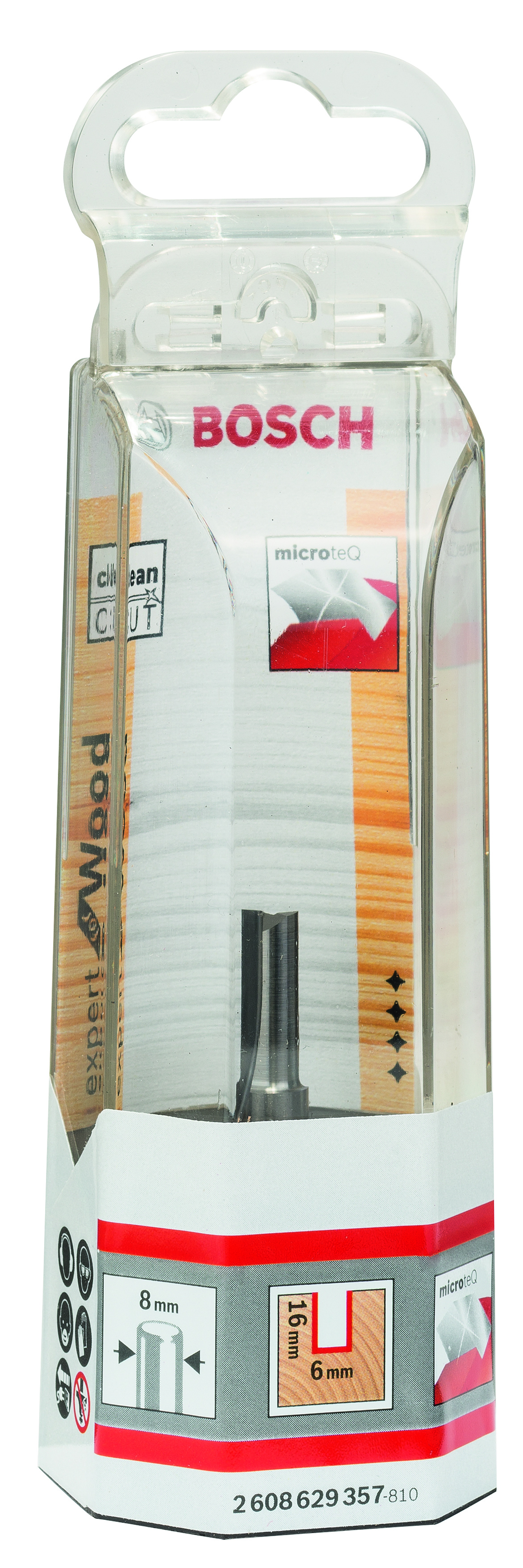 Emballage: 1Marque: BoschRéférence: 2608629357EAN: 3165140802048Description: Fraise à rainurer droit, en carbure 8 mm, D1 6 mm, L 16 mm, G 51 mm