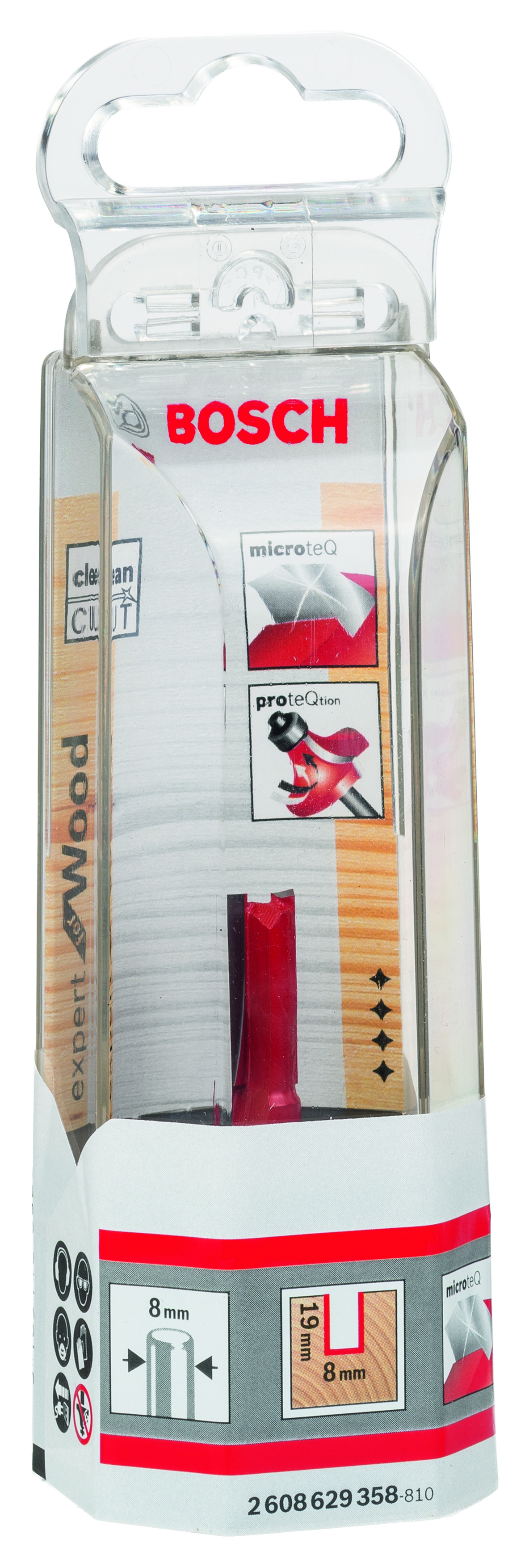 Emballage: 1Marque: BoschRéférence: 2608629358EAN: 3165140802055Description: Fraise à rainurer droit 8 mm, D1 8 mm, L 19 mm, G 52 mm