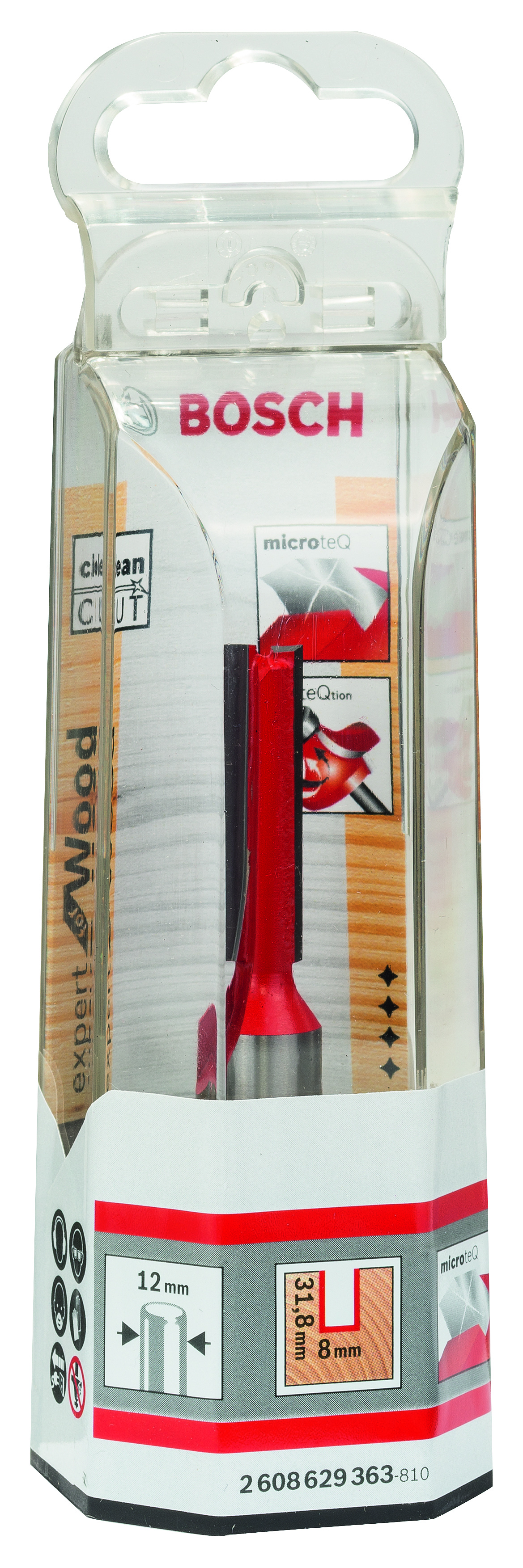 Emballage: 1Marque: BoschRéférence: 2608629363EAN: 3165140802109Description: Fraise à rainurer droit 12 mm, D1 8 mm, L 31,8 mm, G 76 mm