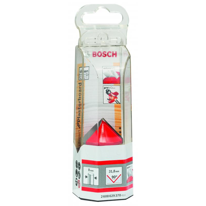 Emballage: 1Marque: BoschRéférence: 2608629370EAN: 3165140802178Description: Fraise à rainurer droit en V 8 mm, D 31,8 mm, L 19 mm, G 51 mm, 90°