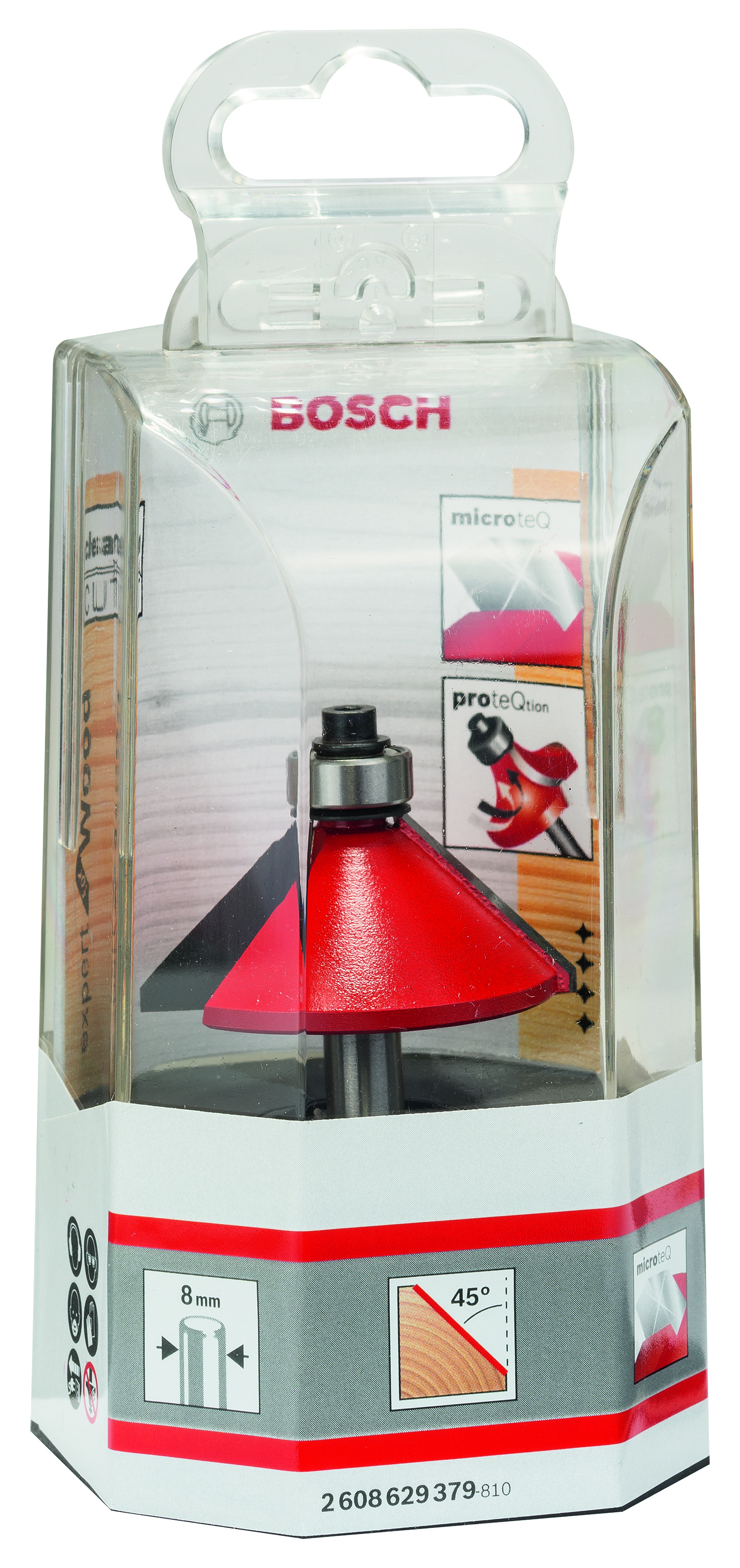 Emballage: 1Marque: BoschRéférence: 2608629379EAN: 3165140802260Description: Fraise à chanfreiner en V 8 mm, D 44 mm, L 18,5 mm, G 61 mm