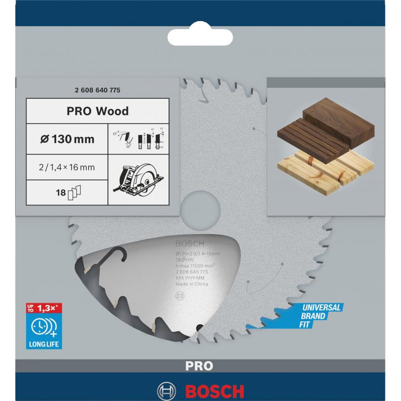 Emballage: 1Marque: BoschRéférence: 2608640775EAN: 3165140239868Description: Lame scie Circulaire PRO Bois 130x16x2,2mm ; 18D