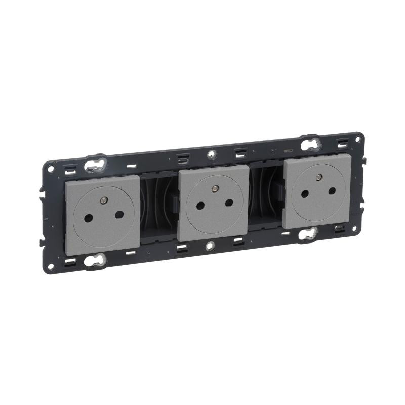 Description: Valena Next prise 3x2P+T précâblée affleurante appareil complet alu à vis