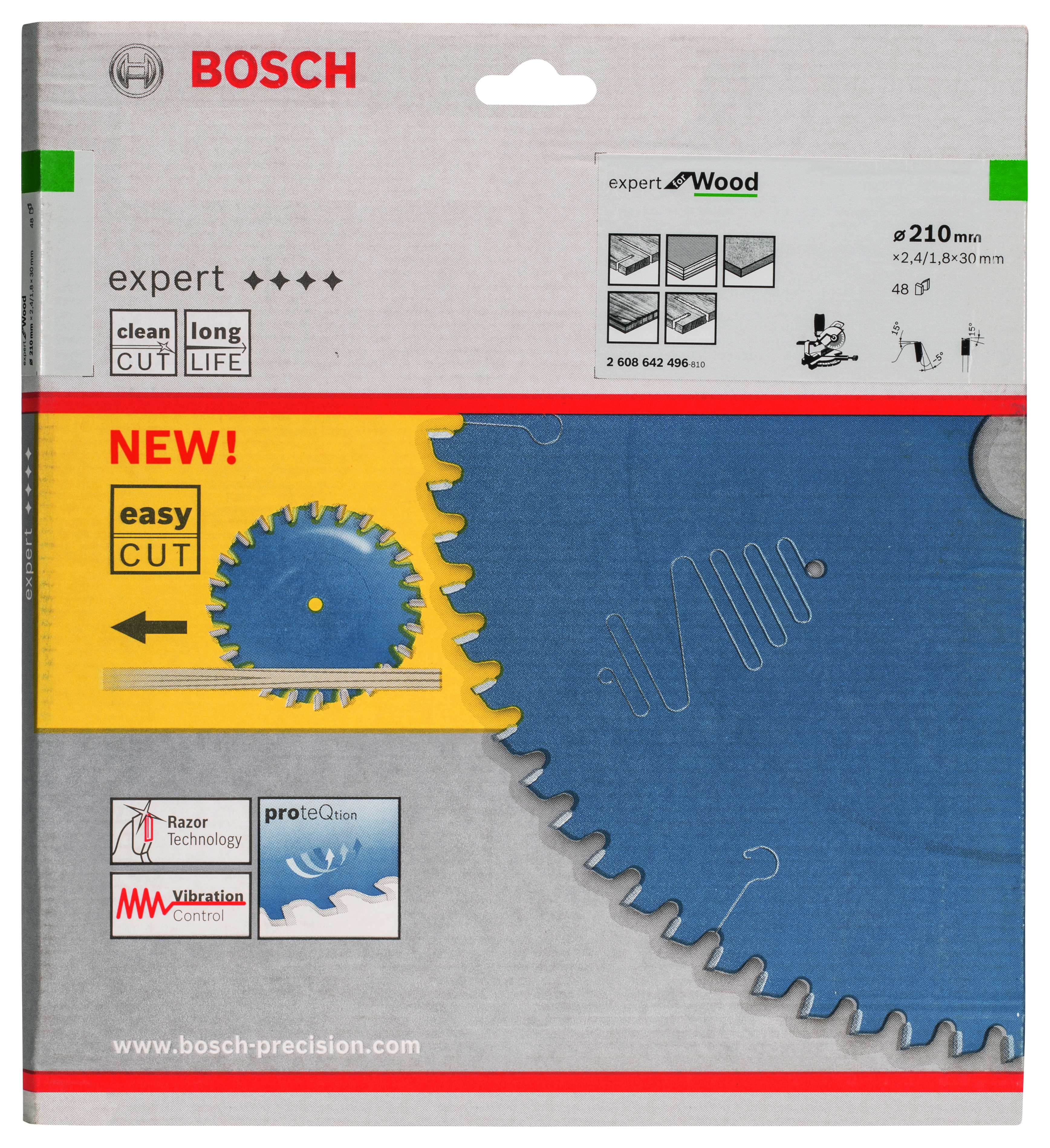 Emballage: 1Marque: BoschRéférence: 2608642496EAN: 3165140648219Description: Lame de Scie Circulaire Expert pour Wood, 210 x 30 x 2,4 mm, 48D