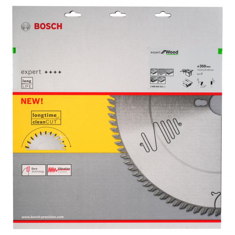 Emballage: 1Marque: BoschRéférence: 2608642512EAN: 3165140648370Description: Lame de Scie Circulaire Expert pour Wood, 350 x 30 x 3,5 mm, 54D