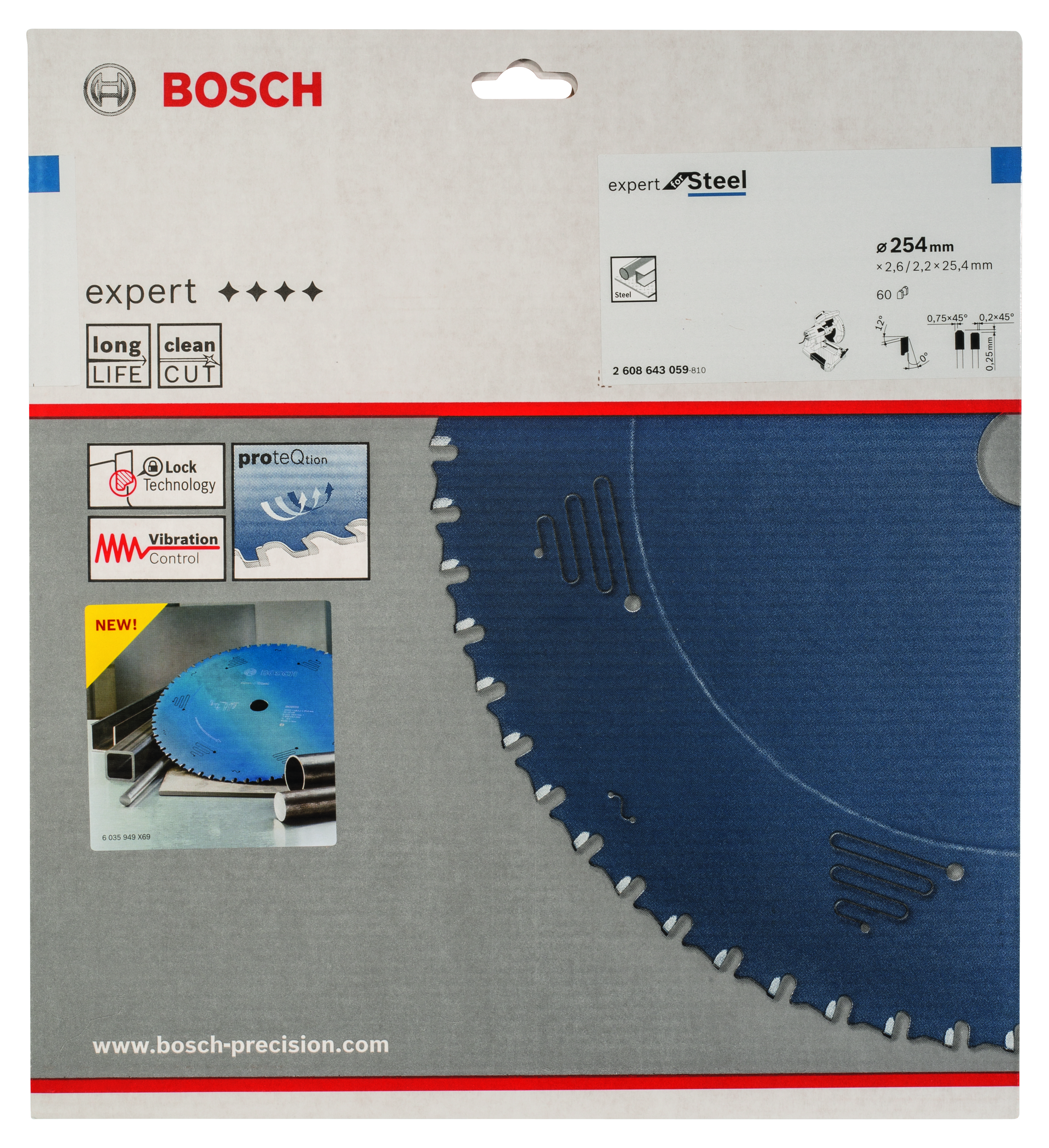 Emballage: 1Marque: BoschRéférence: 2608643059EAN: 3165140737722Description: Lame de Scie Circulaire Expert pour Steel, 254 x 25,4 x 2,6 mm, 60D