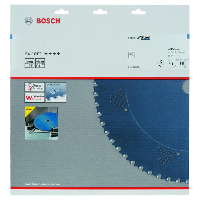 Emballage: 1Marque: BoschRéférence: 2608643063EAN: 3165140737760Description: Lame de Scie Circulaire Expert pour Steel, 355 x 25,4 x 2,6 mm, 90D