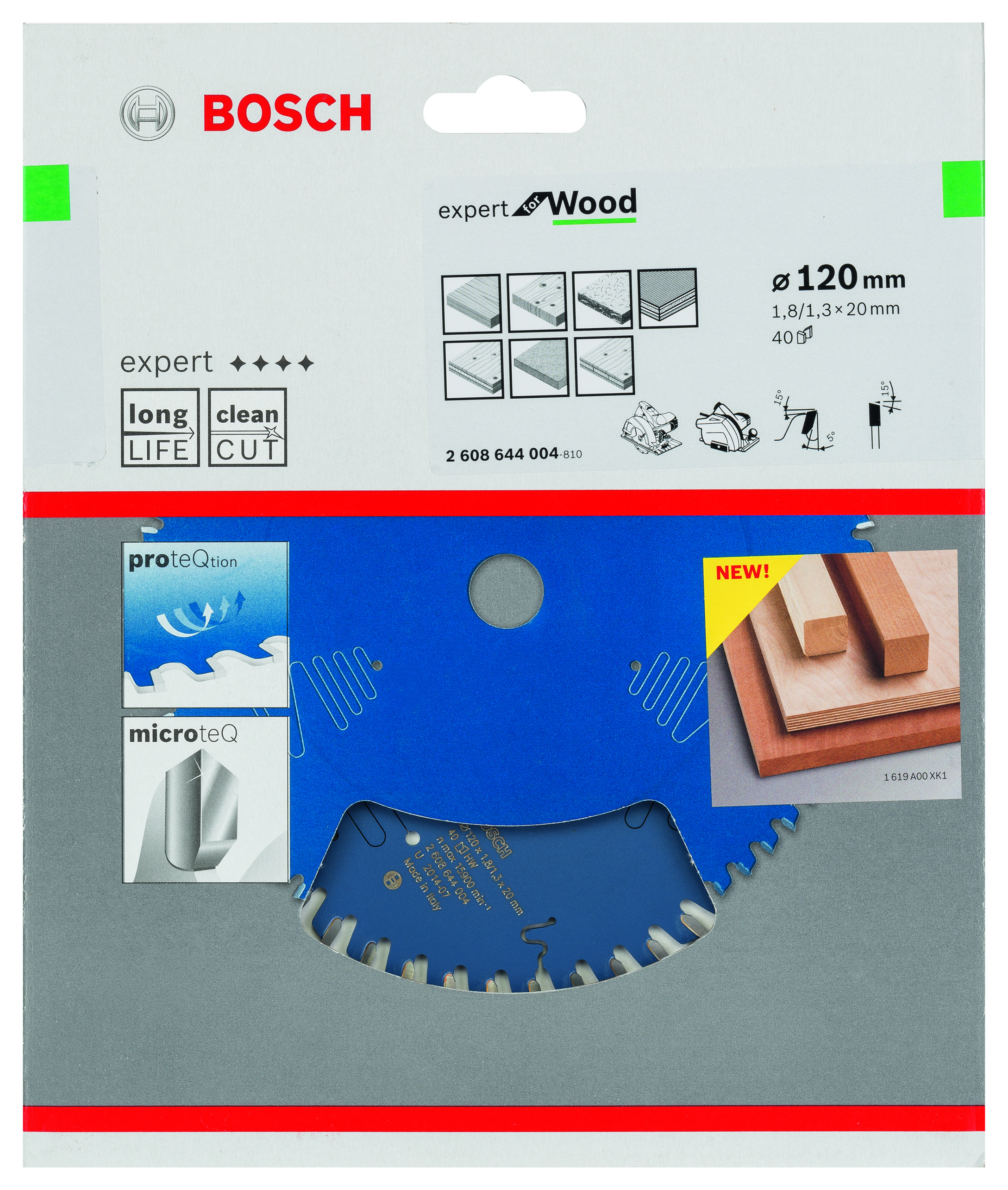 Emballage: 1Marque: BoschRéférence: 2608644004EAN: 3165140795708Description: Lame de Scie Circulaire Expert pour Wood, 120 x 20 x 1,8 mm, 40D