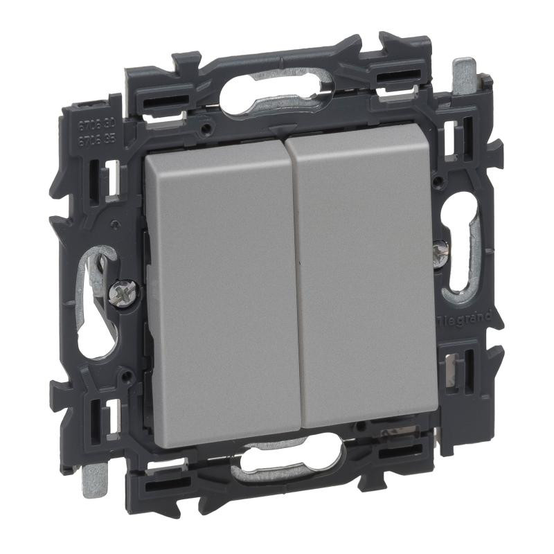 Emballage: 1 Marque: LegrandRéférence: 741649EAN: 3414971277465Description: Valena Next double poussoir 6A appareil complet alu à griffes