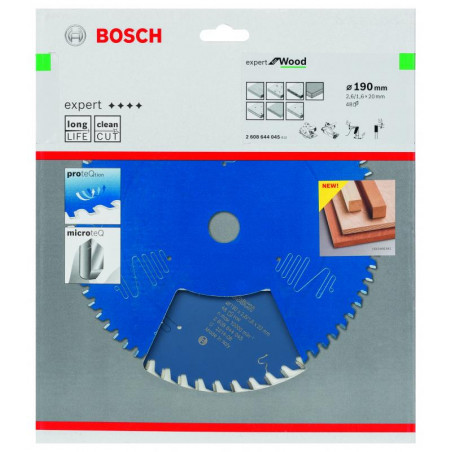 Emballage: 1Marque: BoschRéférence: 2608644045EAN: 3165140796118Description: Lame de Scie Circulaire Expert pour Wood, 190 x 20 x 2,6 mm, 48D