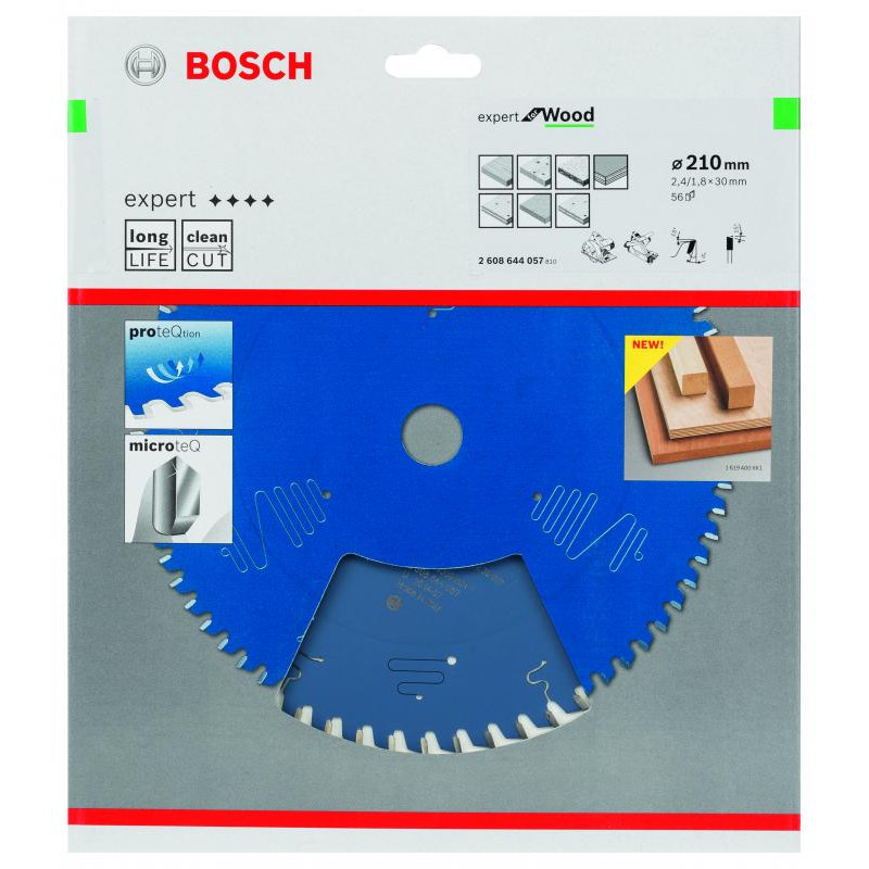 Emballage: 1Marque: BoschRéférence: 2608644057EAN: 3165140796231Description: Lame de Scie Circulaire Expert pour Wood, 210 x 30 x 2,4 mm, 56D