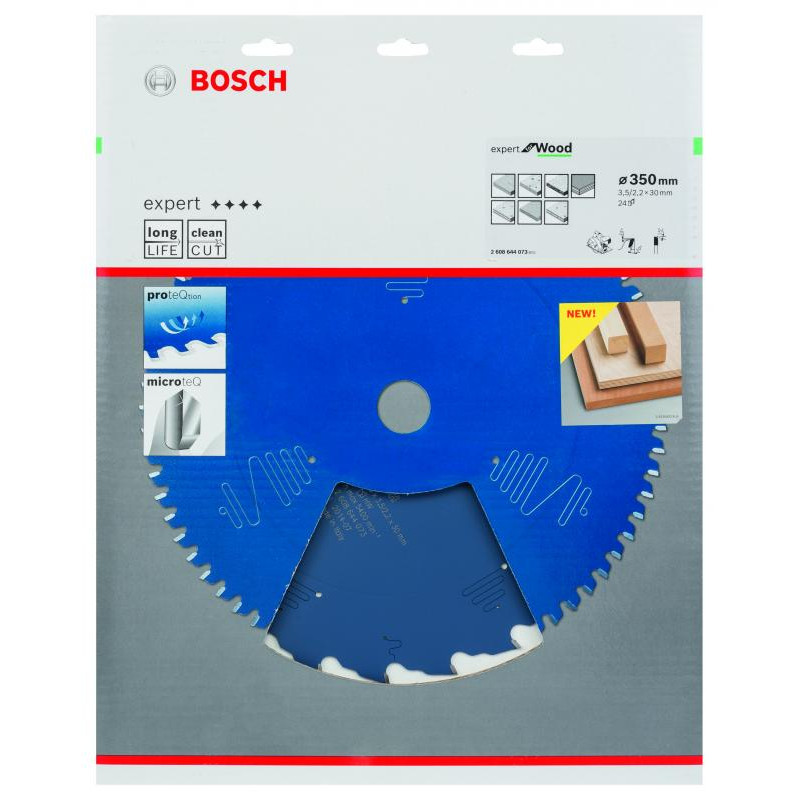 Emballage: 1Marque: BoschRéférence: 2608644073EAN: 3165140796392Description: Lame de Scie Circulaire Expert pour Wood, 350 x 30 x 3,5 mm, 24D