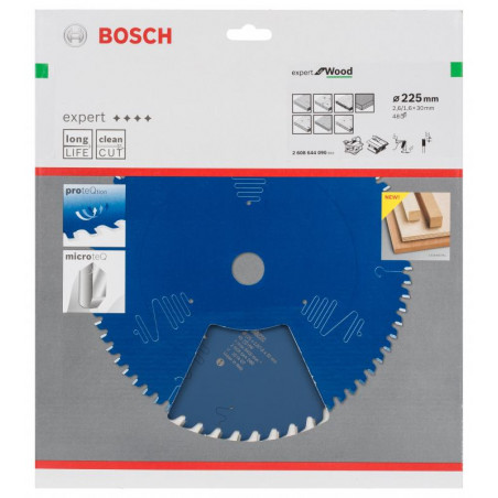 Emballage: 1Marque: BoschRéférence: 2608644090EAN: 3165140796569Description: Lame de Scie Circulaire Expert pour Wood, 225 x 30 x 2,6 mm, 48D