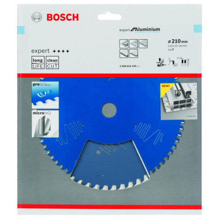 Emballage: 1Marque: BoschRéférence: 2608644109EAN: 3165140796750Description: Lame de Scie Circulaire Expert pour Aluminium, 210 x 30 x 2,6 mm, 54D